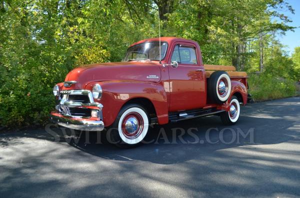 Restored 1954 Chevrolet 3100 Stepside Pickup. This C3100 has a rebuilt 235ci engine and 3-speed manual transmission. This was a frame off restoration done by Bob Schmidt. The odometer now reads 53,954.