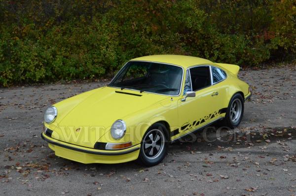 This is a 1972 Porsche 911 originally delivered to a US Serviceman in Germany who brought it home with him. The second owner commissioned the build in the late 1990s to make a 1973 Carrera 2.7 RS style tribute. He began with a beautiful condition, rust-free car. All NOS body parts were used including steel front flared fenders, steel rear RS flares, steel rear bumper, and fiberglass front bumper and ducktail, and famed Stoddard Imports performed the restoration. The car was repainted in its original Light Yellow color, and it still shows incredibly well today, as if the restoration was completed recently, which shows the absolute top quality work which is done by Stoddard.