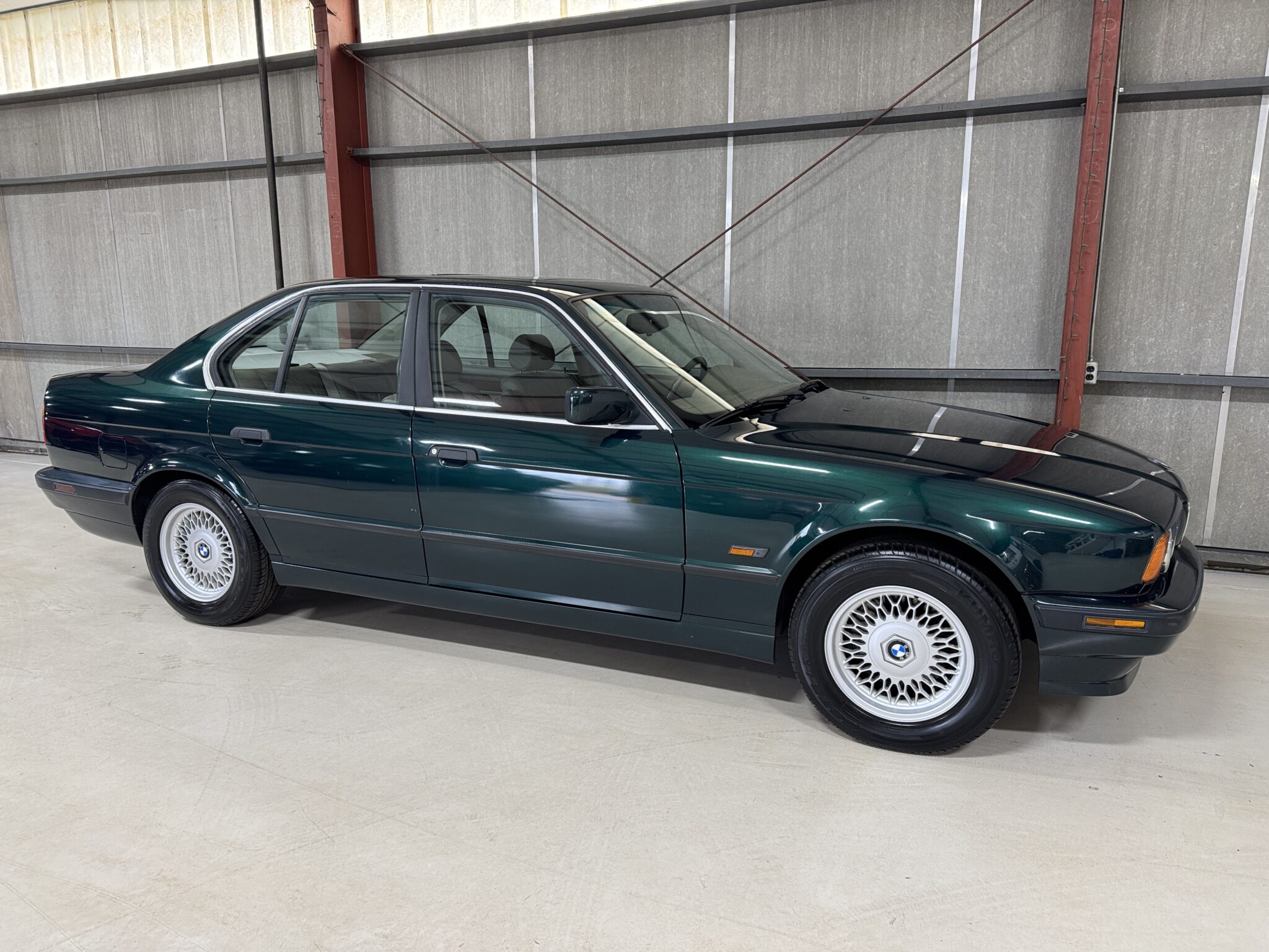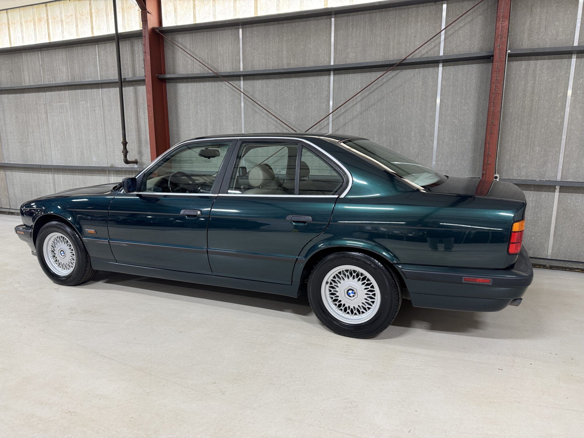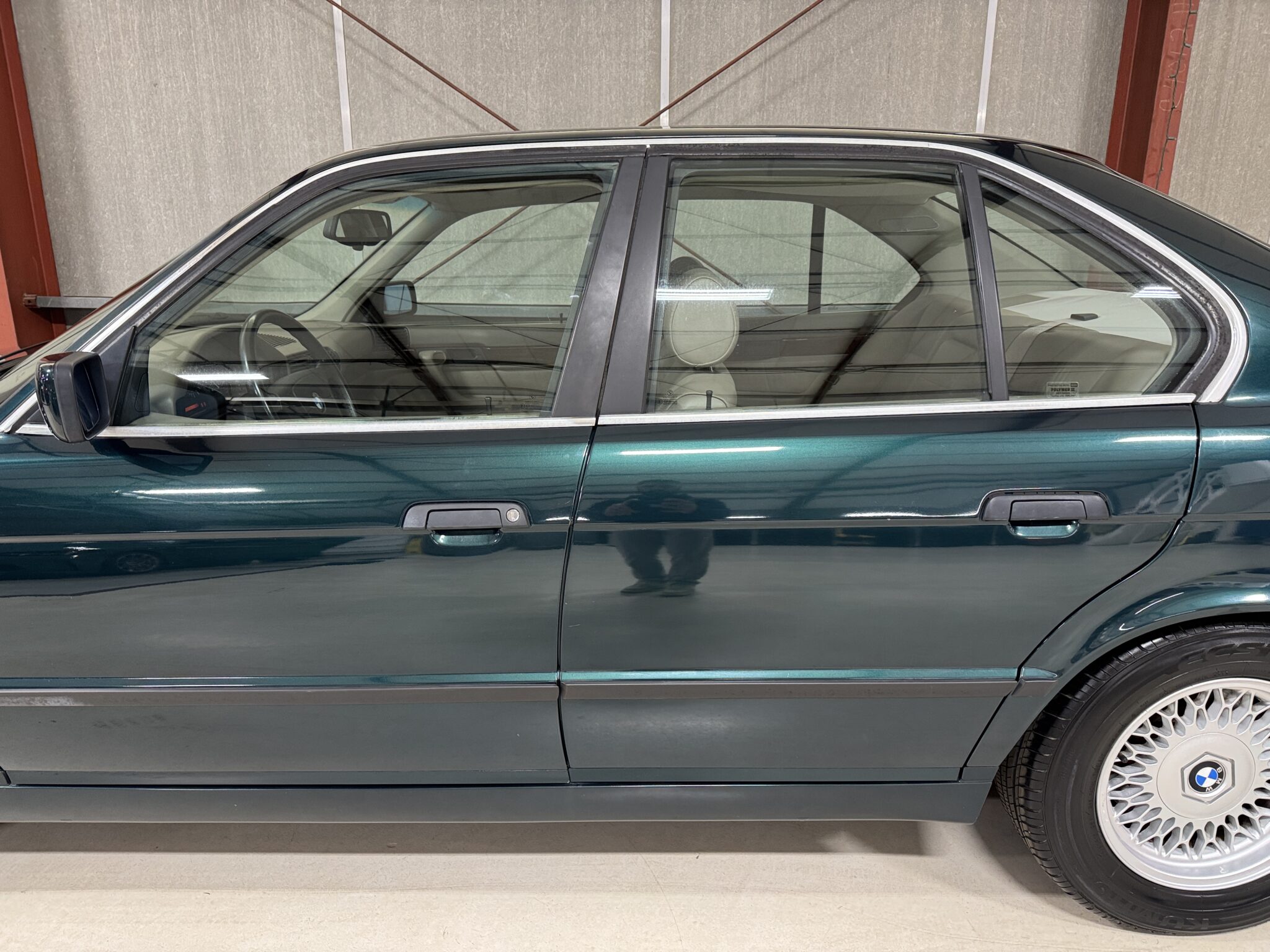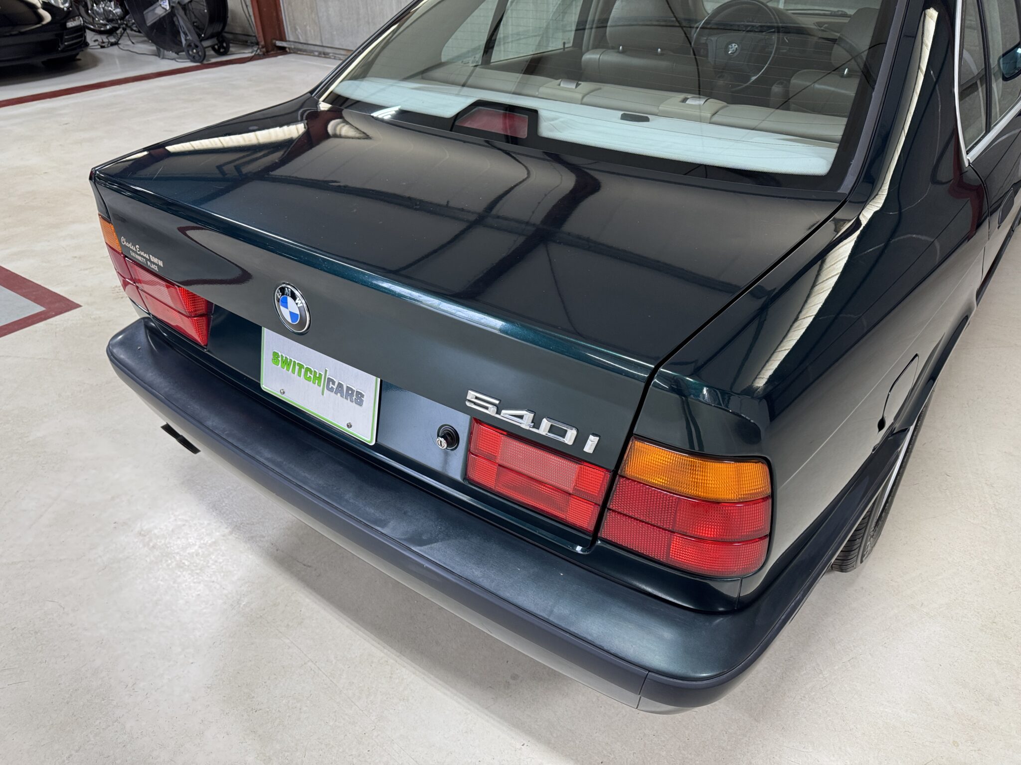 Two-owner 1995 BMW 540i with 112,300 miles, finished in Oxford Green Metallic over a Parchment leather interior. This is the final model year of the E34 540i. Power comes from a naturally aspirated 4.0L V8 paired with a 5-speed automatic transmission and rear-wheel drive.