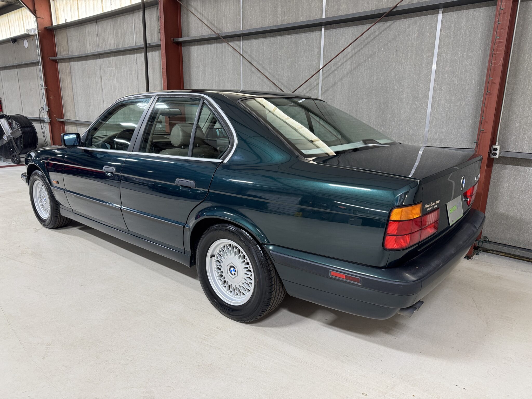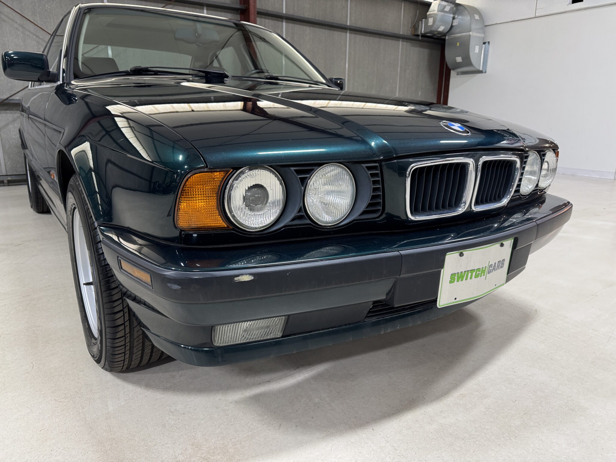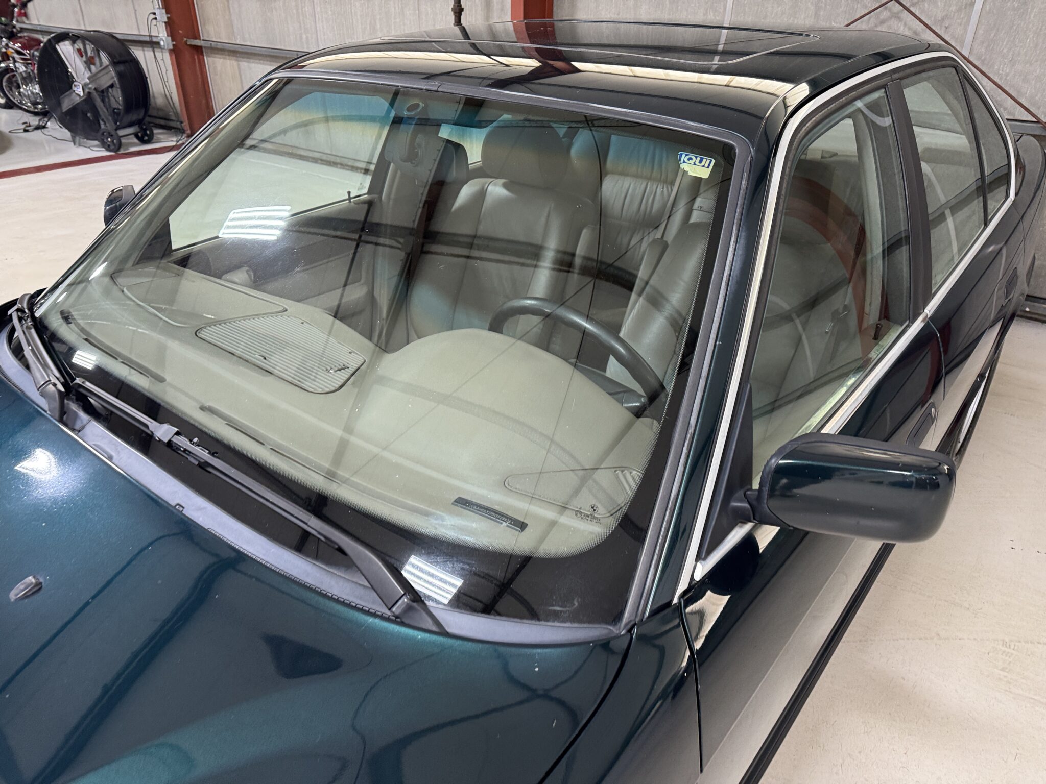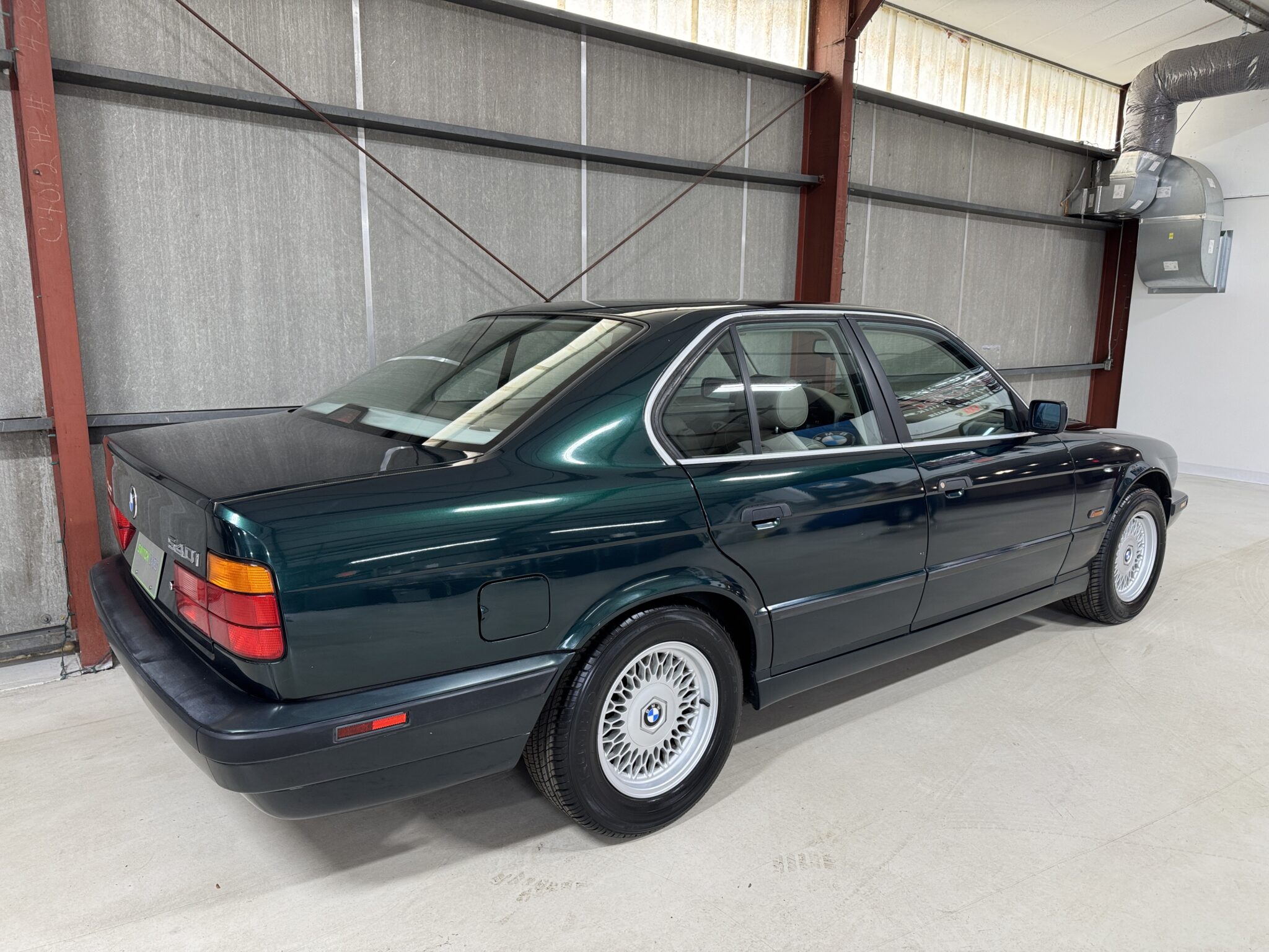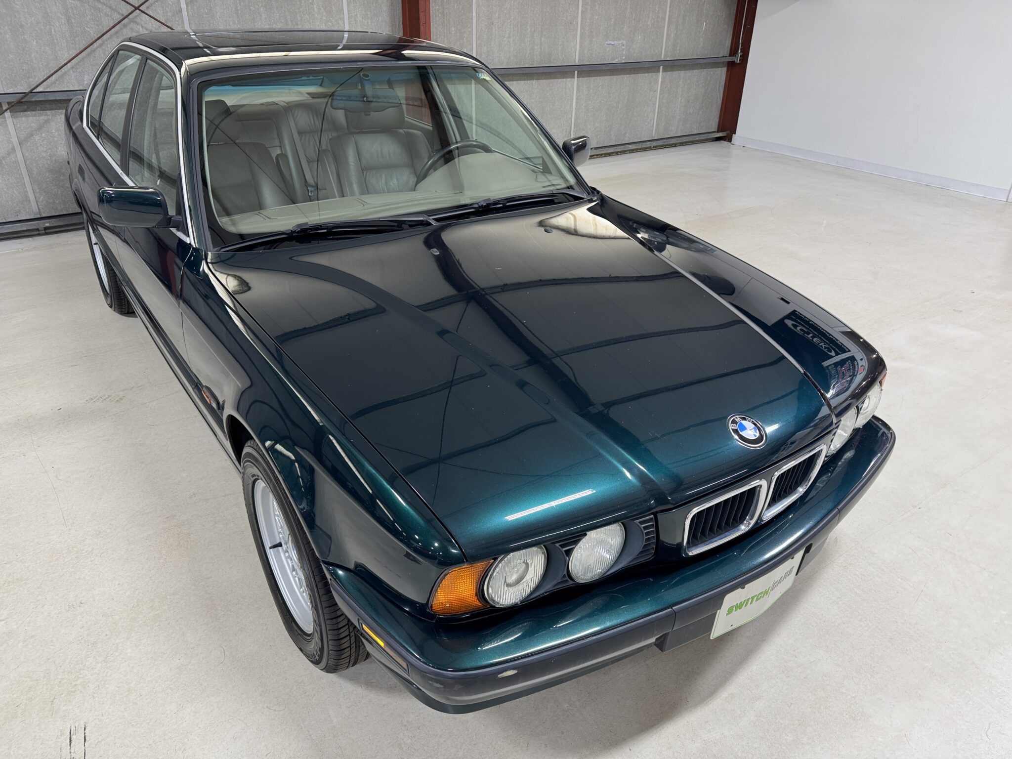 Two-owner 1995 BMW 540i with 112,300 miles, finished in Oxford Green Metallic over a Parchment leather interior. This is the final model year of the E34 540i. Power comes from a naturally aspirated 4.0L V8 paired with a 5-speed automatic transmission and rear-wheel drive.
