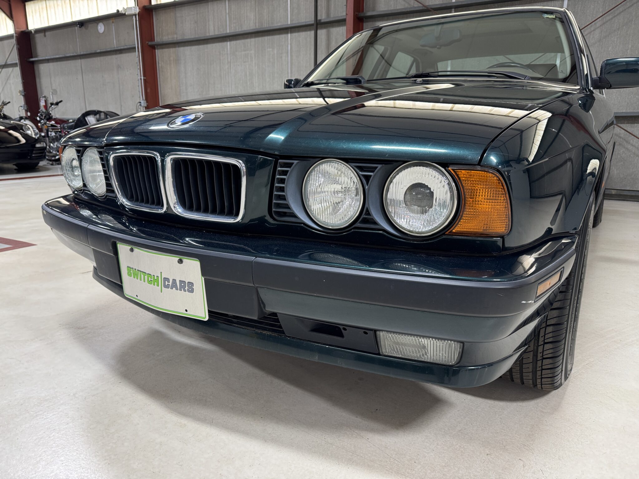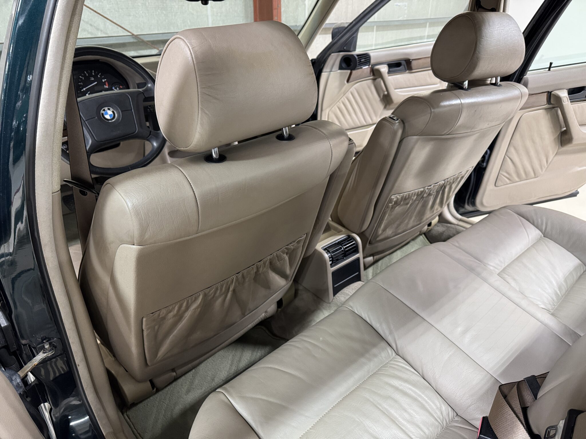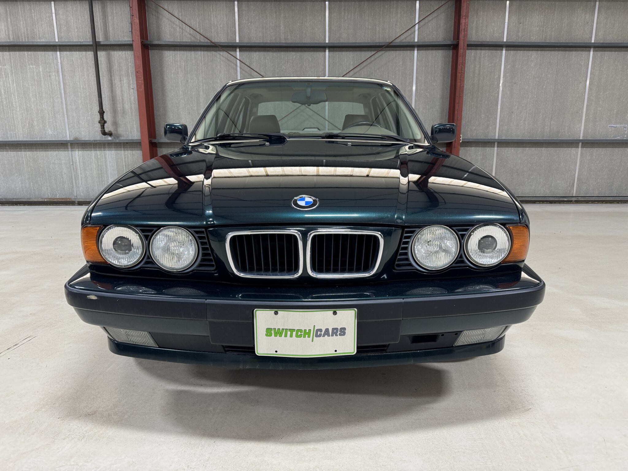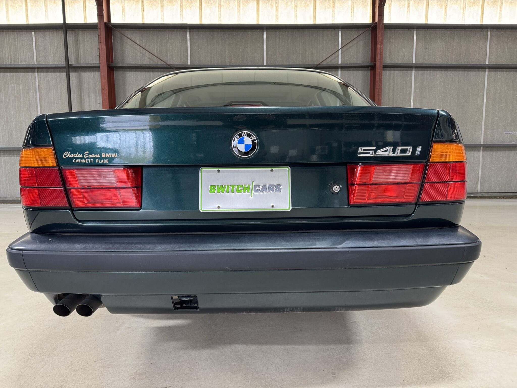Two-owner 1995 BMW 540i with 112,300 miles, finished in Oxford Green Metallic over a Parchment leather interior. This is the final model year of the E34 540i. Power comes from a naturally aspirated 4.0L V8 paired with a 5-speed automatic transmission and rear-wheel drive.