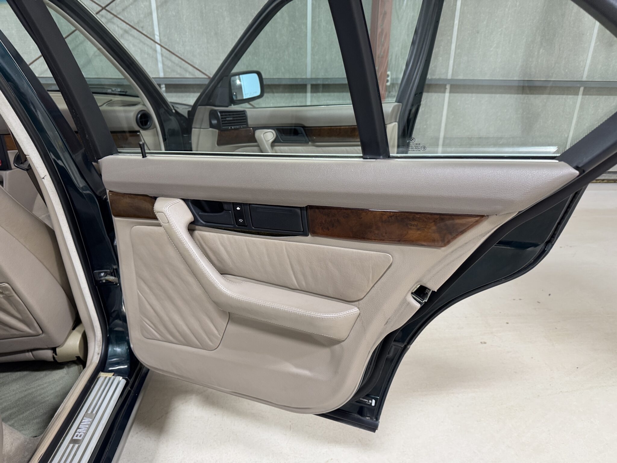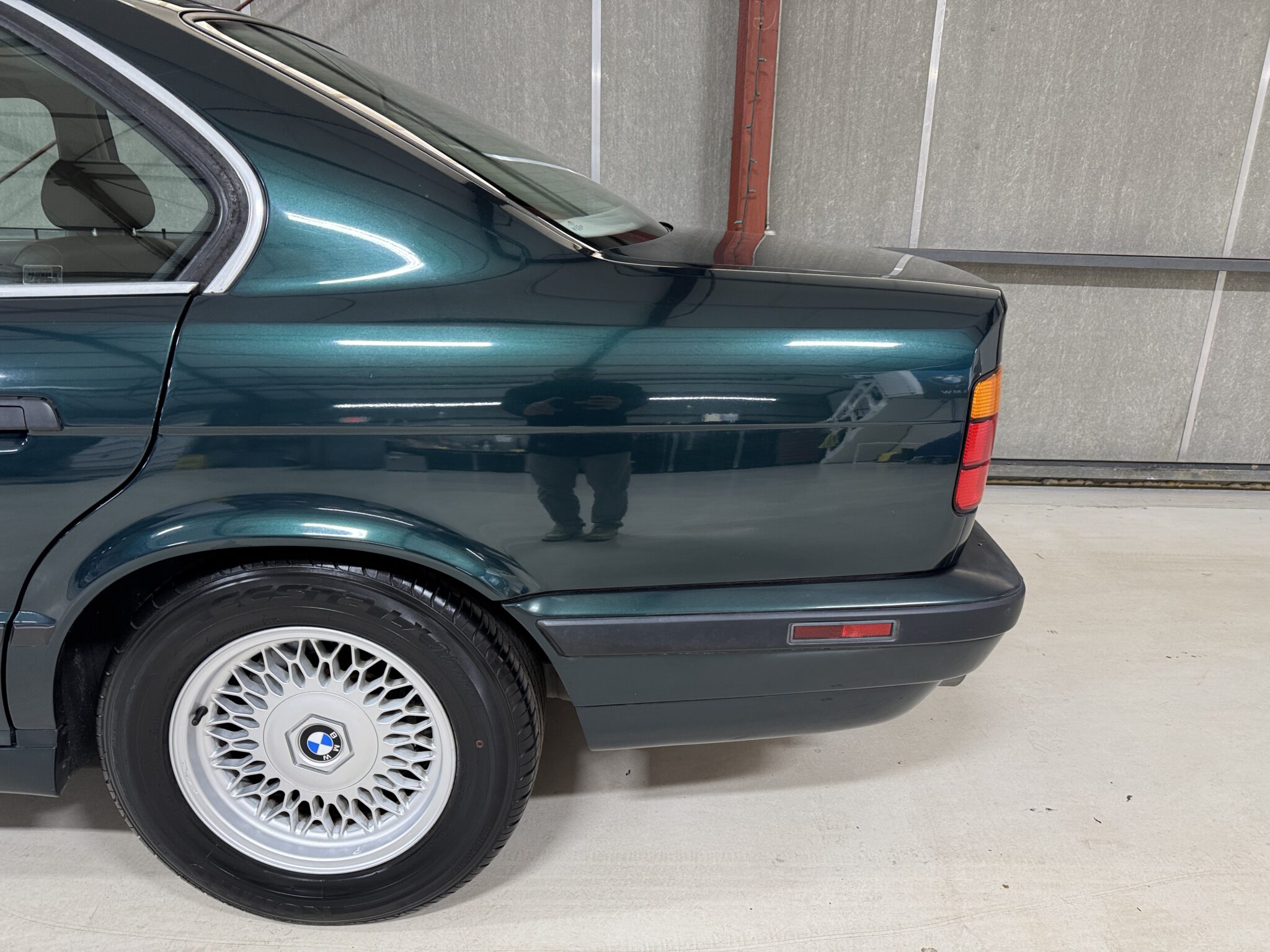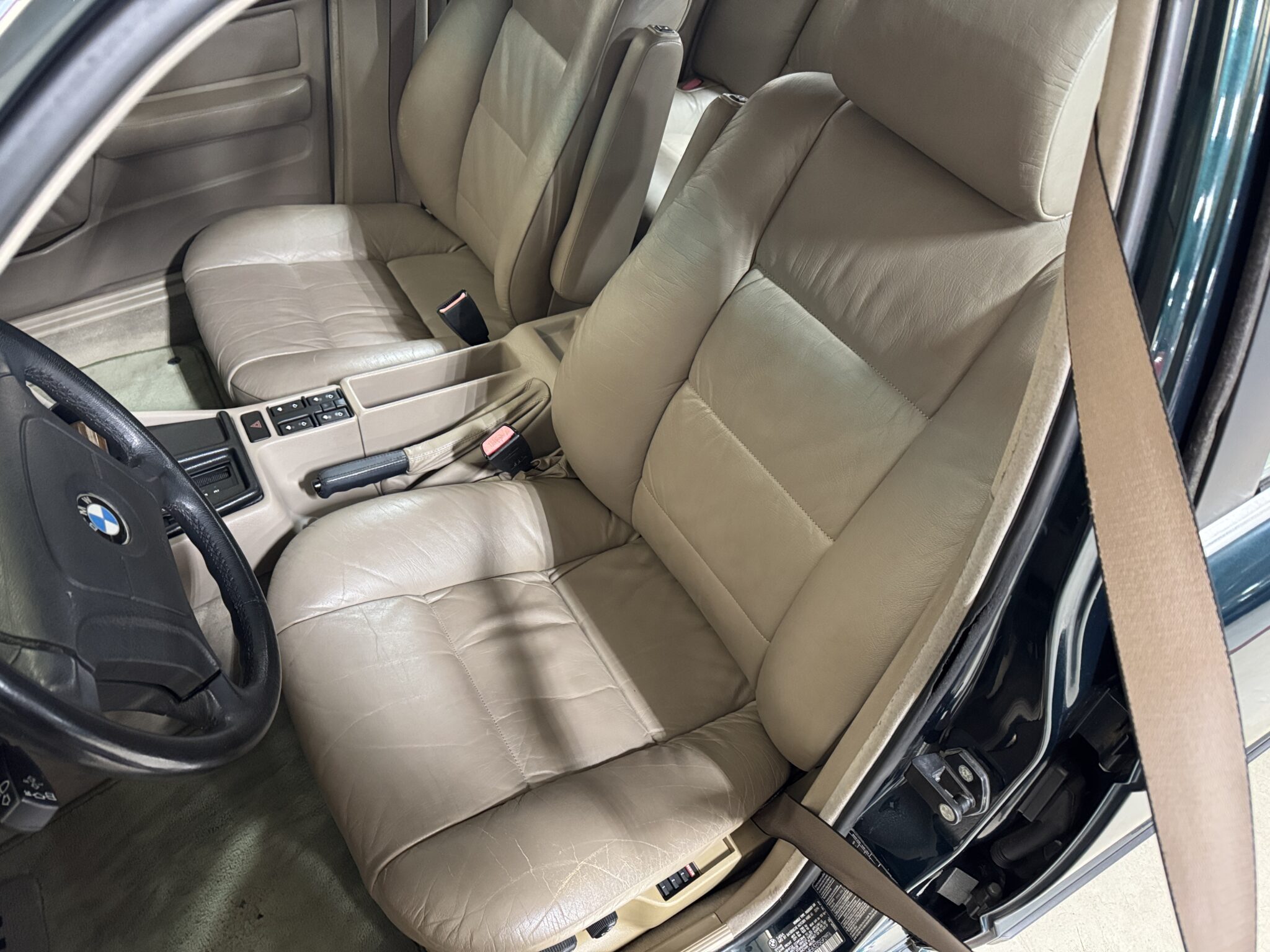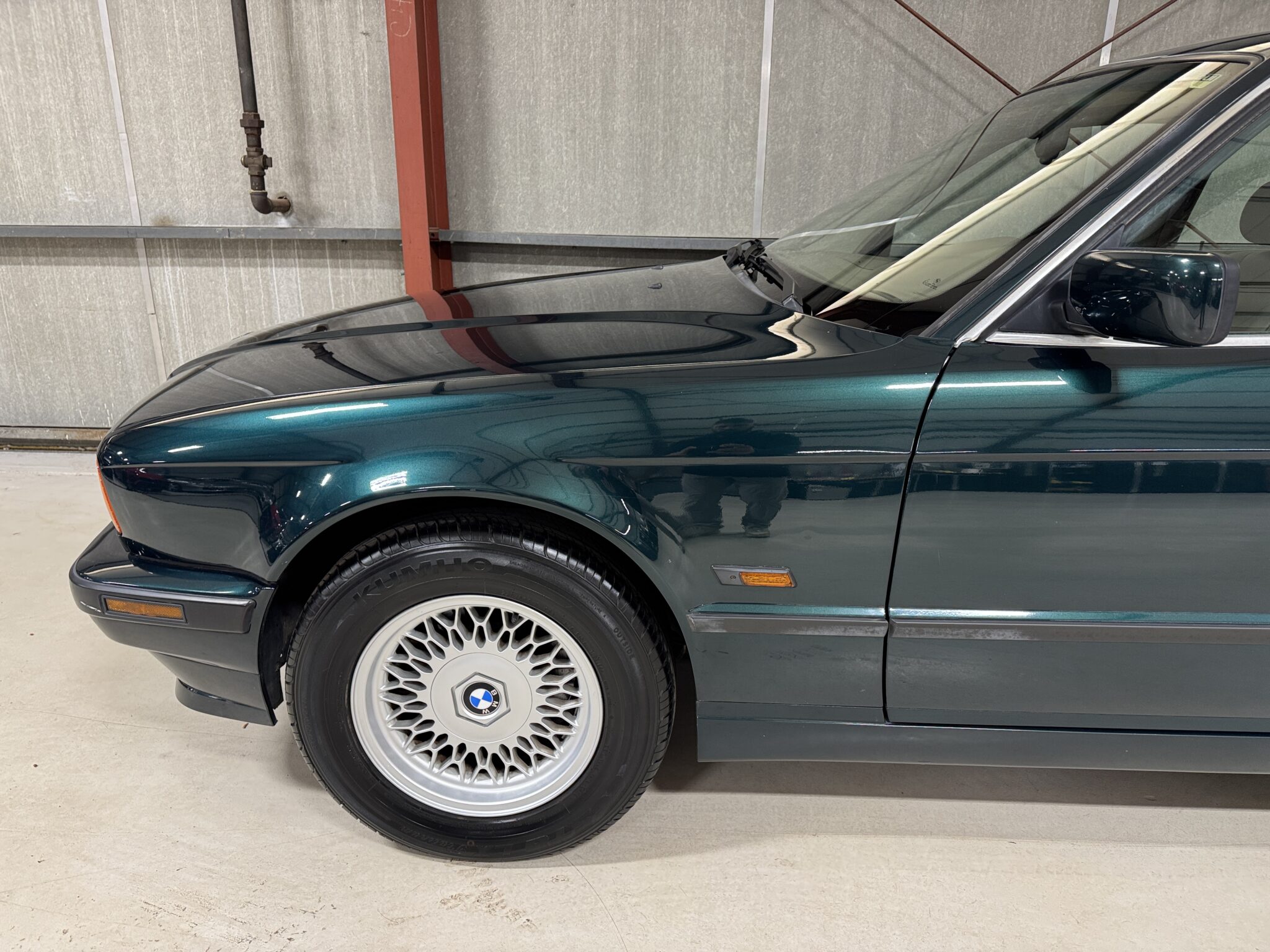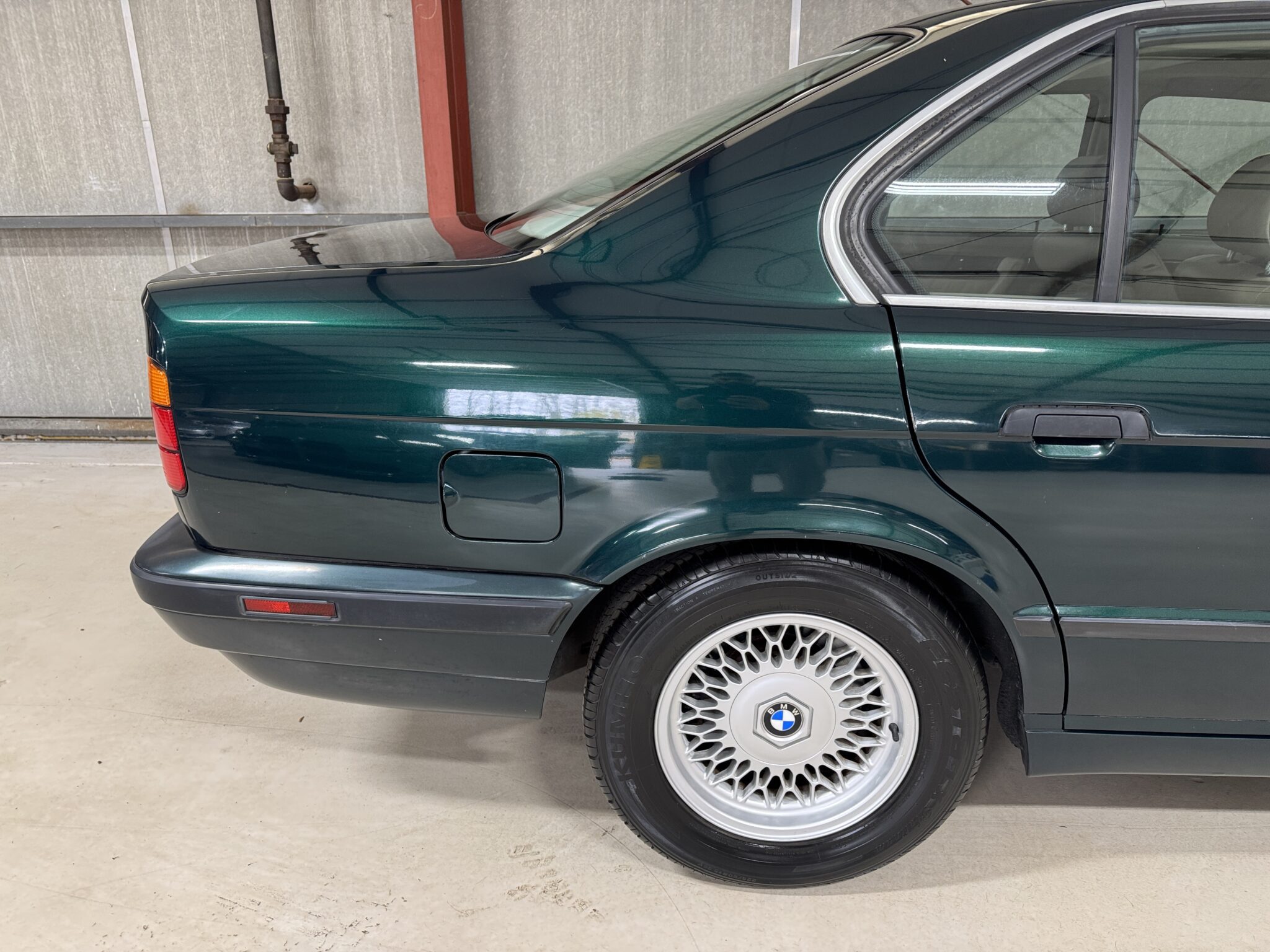 Two-owner 1995 BMW 540i with 112,300 miles, finished in Oxford Green Metallic over a Parchment leather interior. This is the final model year of the E34 540i. Power comes from a naturally aspirated 4.0L V8 paired with a 5-speed automatic transmission and rear-wheel drive.