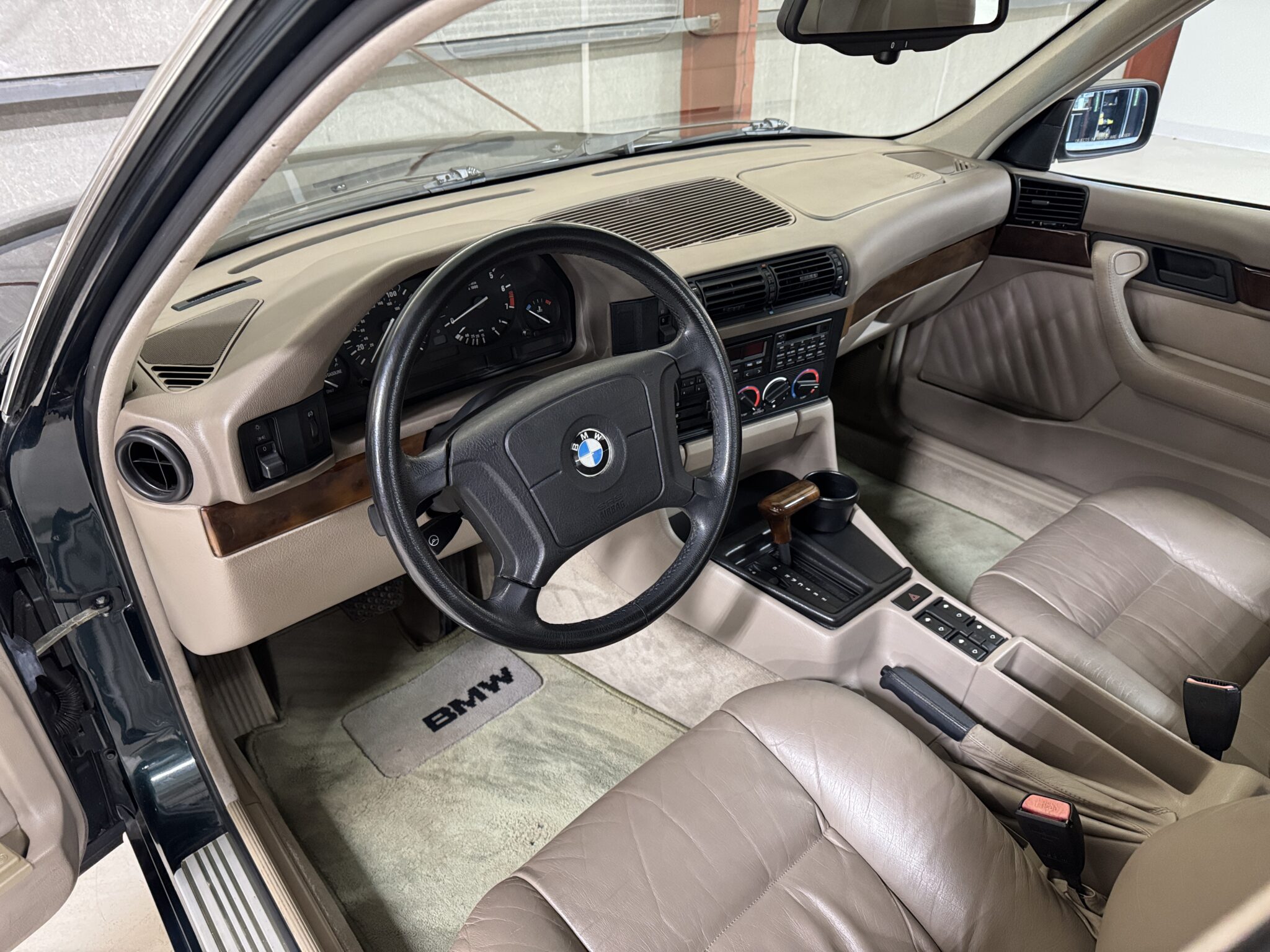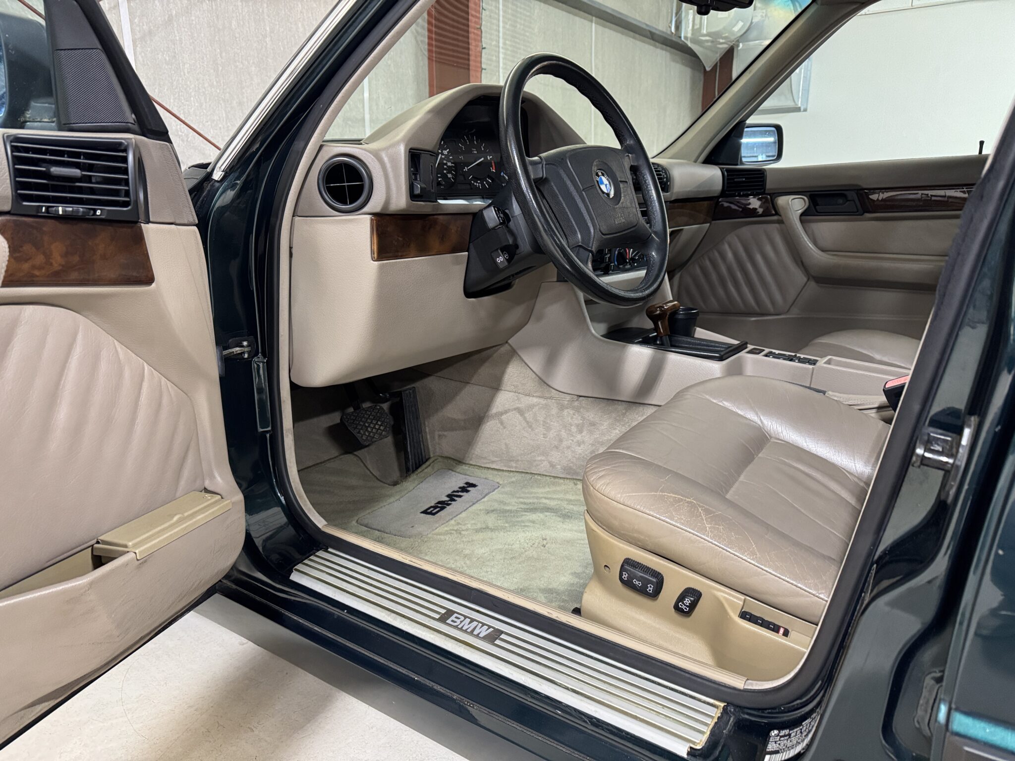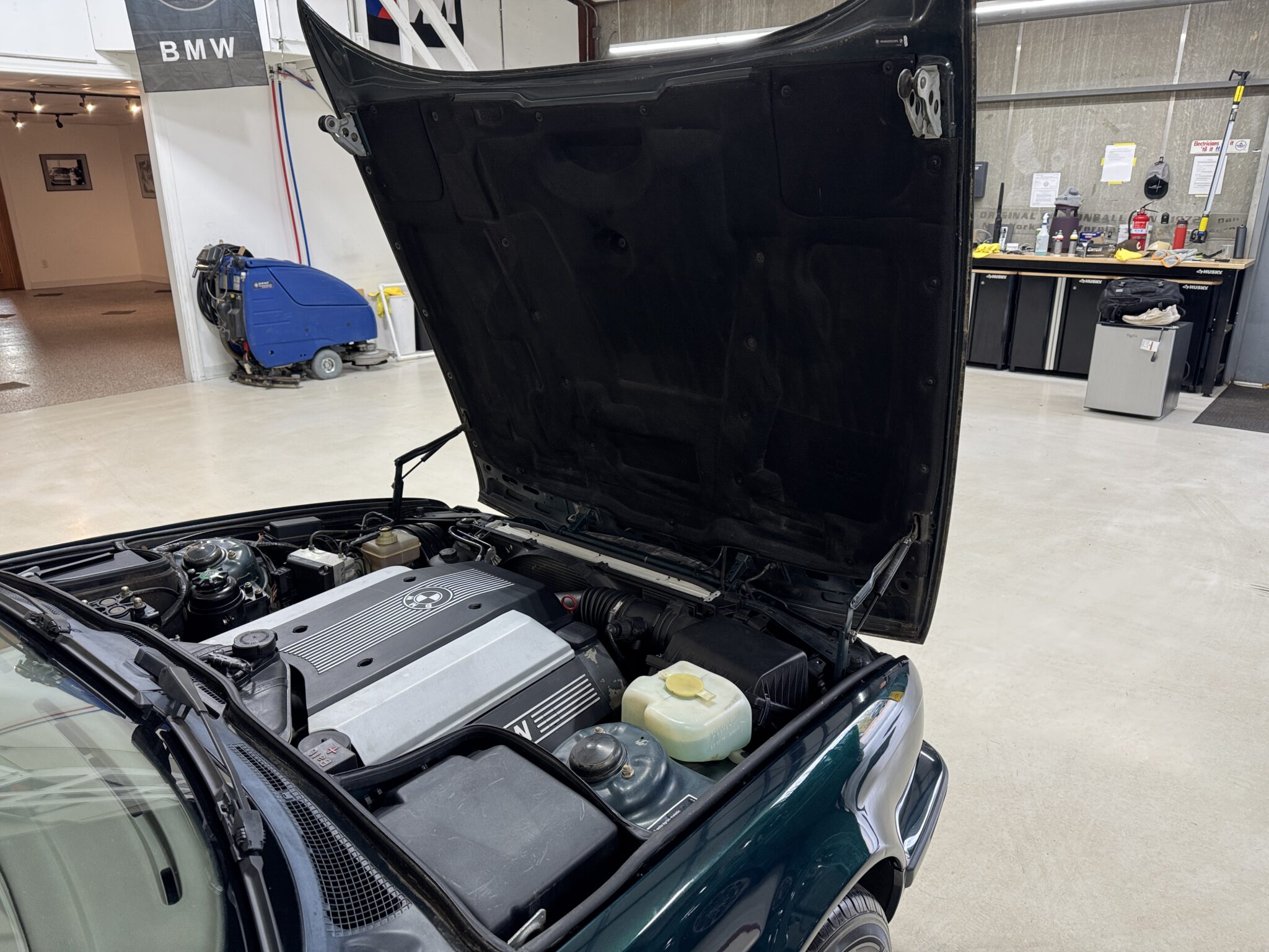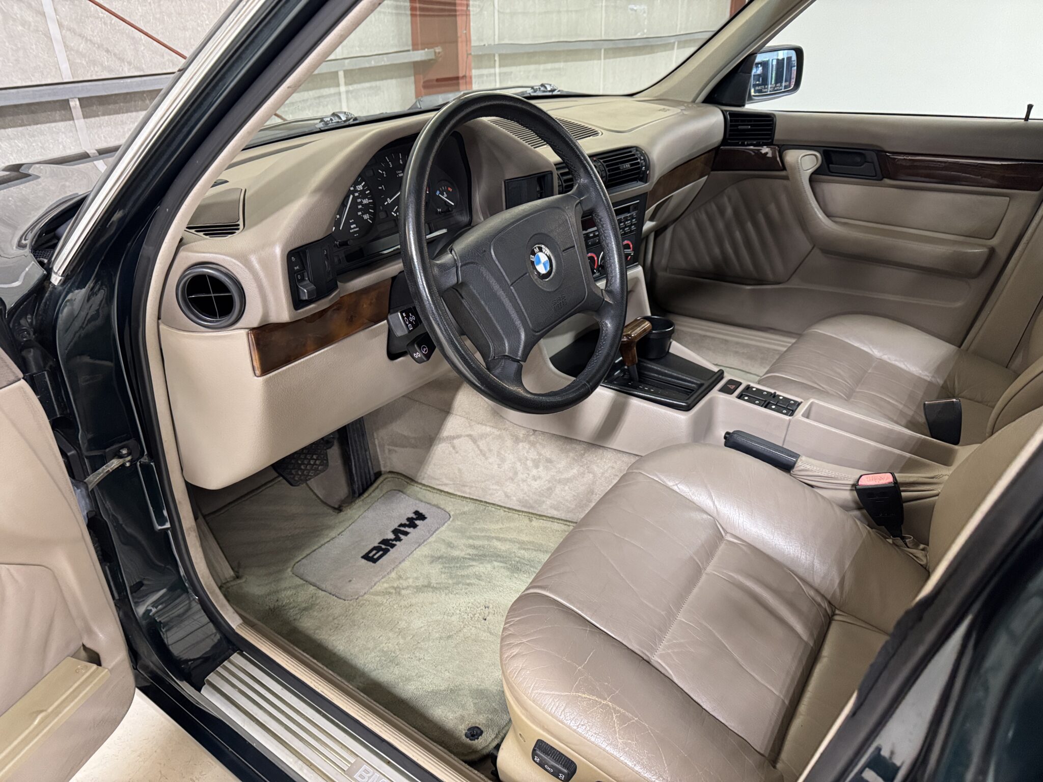 Two-owner 1995 BMW 540i with 112,300 miles, finished in Oxford Green Metallic over a Parchment leather interior. This is the final model year of the E34 540i. Power comes from a naturally aspirated 4.0L V8 paired with a 5-speed automatic transmission and rear-wheel drive.