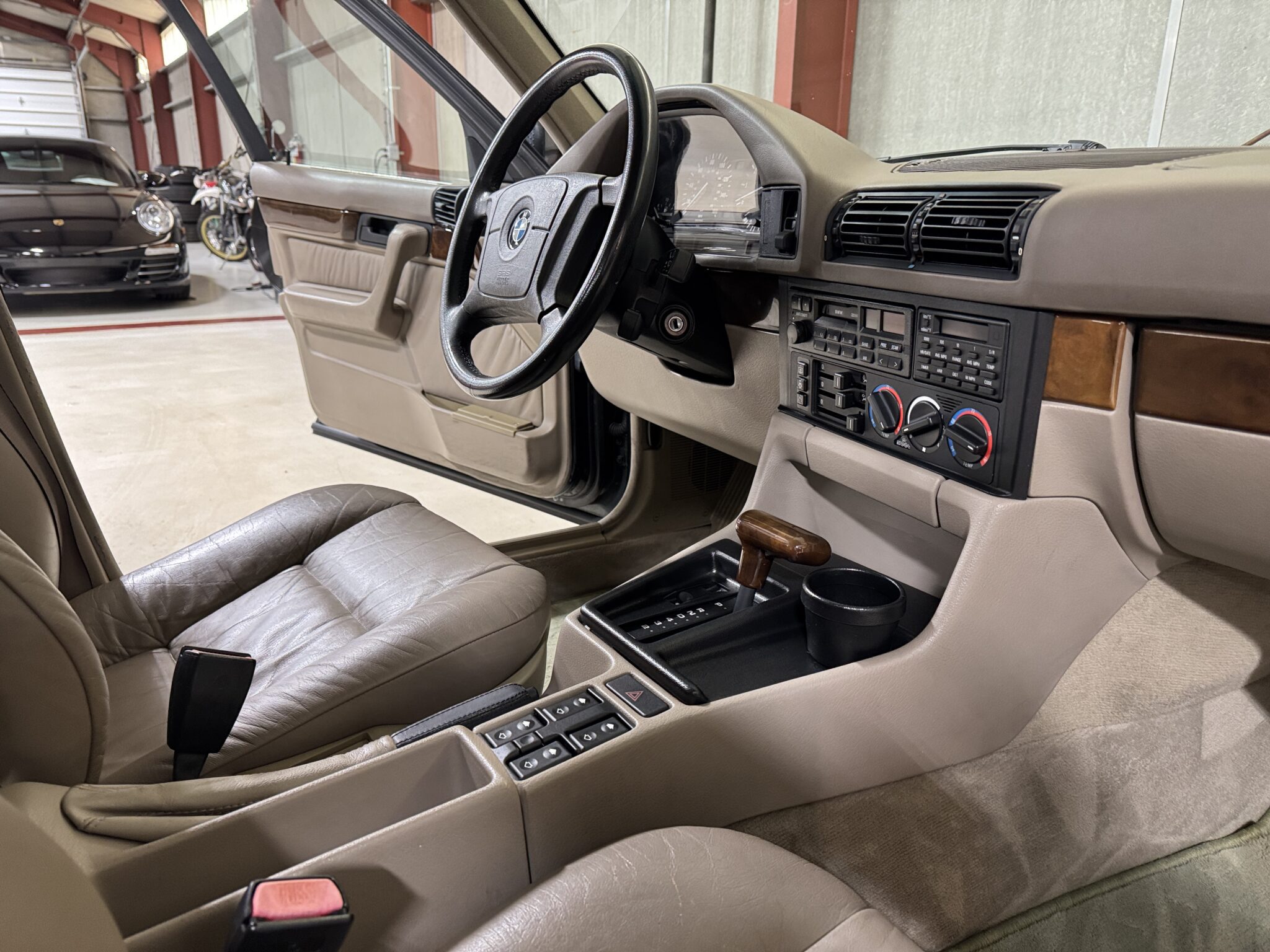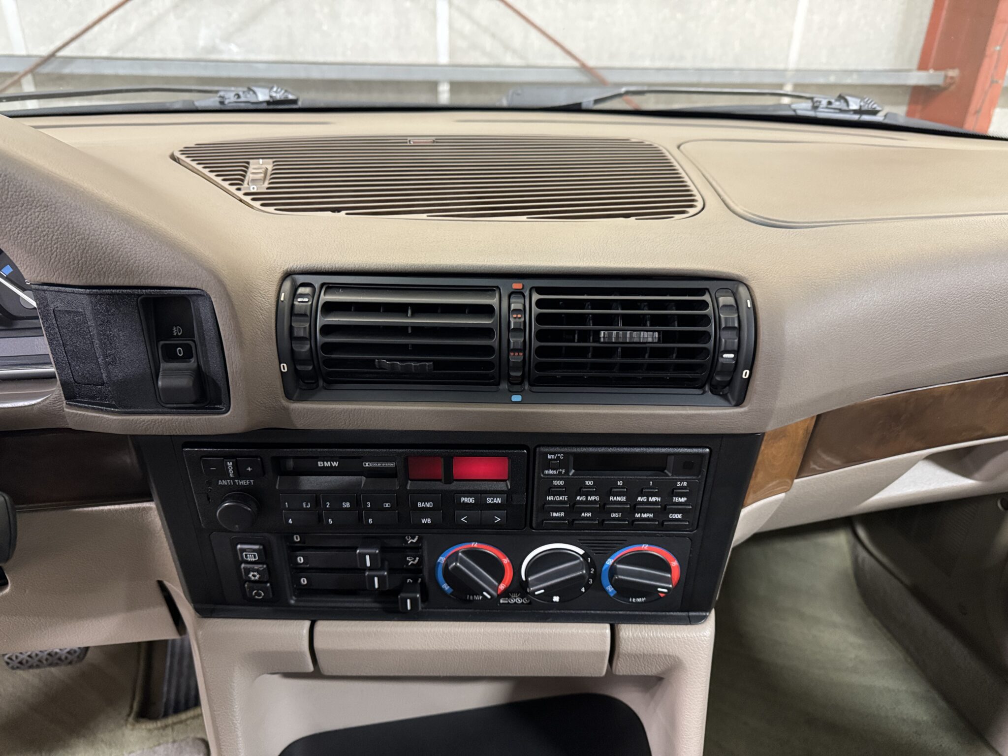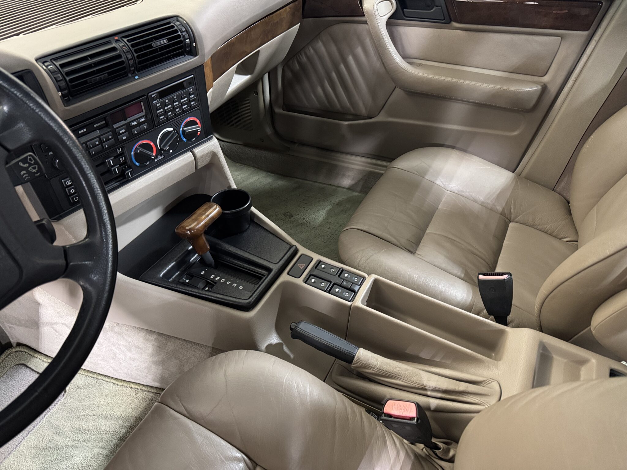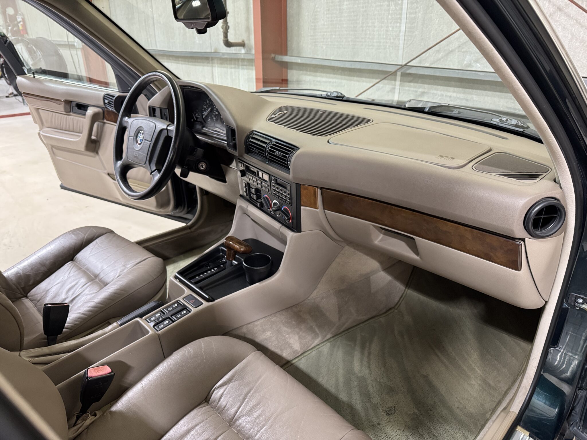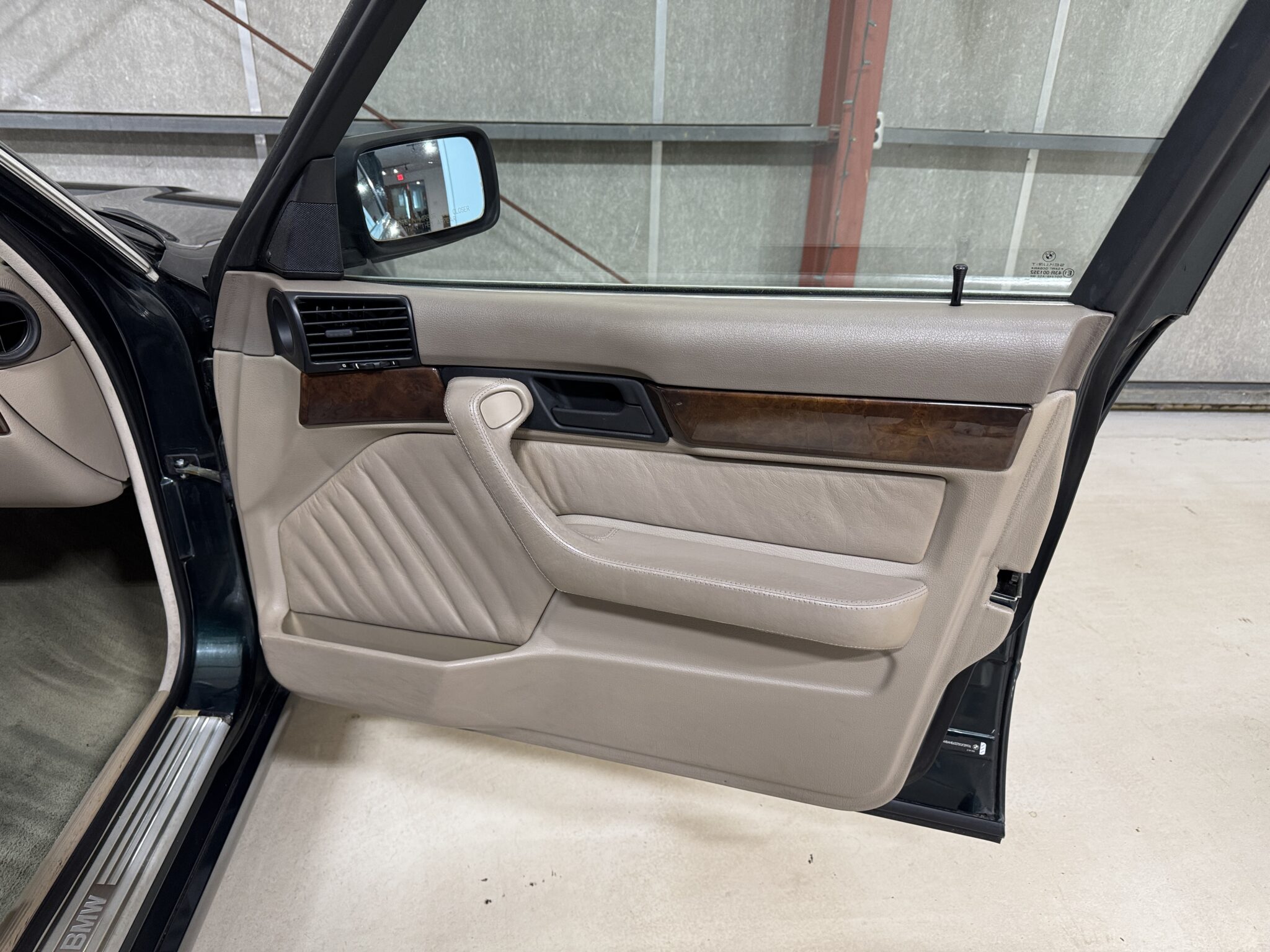 Two-owner 1995 BMW 540i with 112,300 miles, finished in Oxford Green Metallic over a Parchment leather interior. This is the final model year of the E34 540i. Power comes from a naturally aspirated 4.0L V8 paired with a 5-speed automatic transmission and rear-wheel drive.