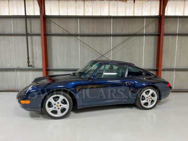 We have just added this beautiful and low mileage Porsche 993 C2 to our inventory. Finished in striking Midnight Blue Metallic over Dark Blue interior, this highly original 993 is a fantastic example. It is all stock other than the addition of 18-inch Porsche Turbo Twist wheels. Long-term previous ownership, some service records, and freshly serviced in preparation for sale. Paint gauge shows factory-specification readings on all panels. Comes with two keys and fobs, all books/manuals, factory air compressor, spare tire, jack, and tool roll.