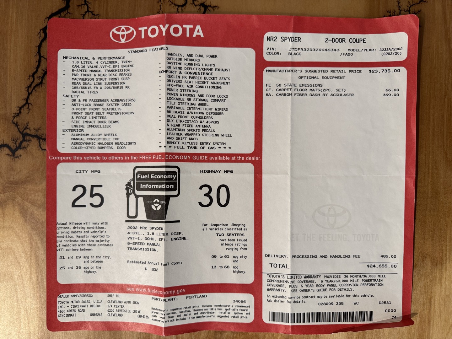 2002 Toyota MR2 Spyder with just under 50k miles.