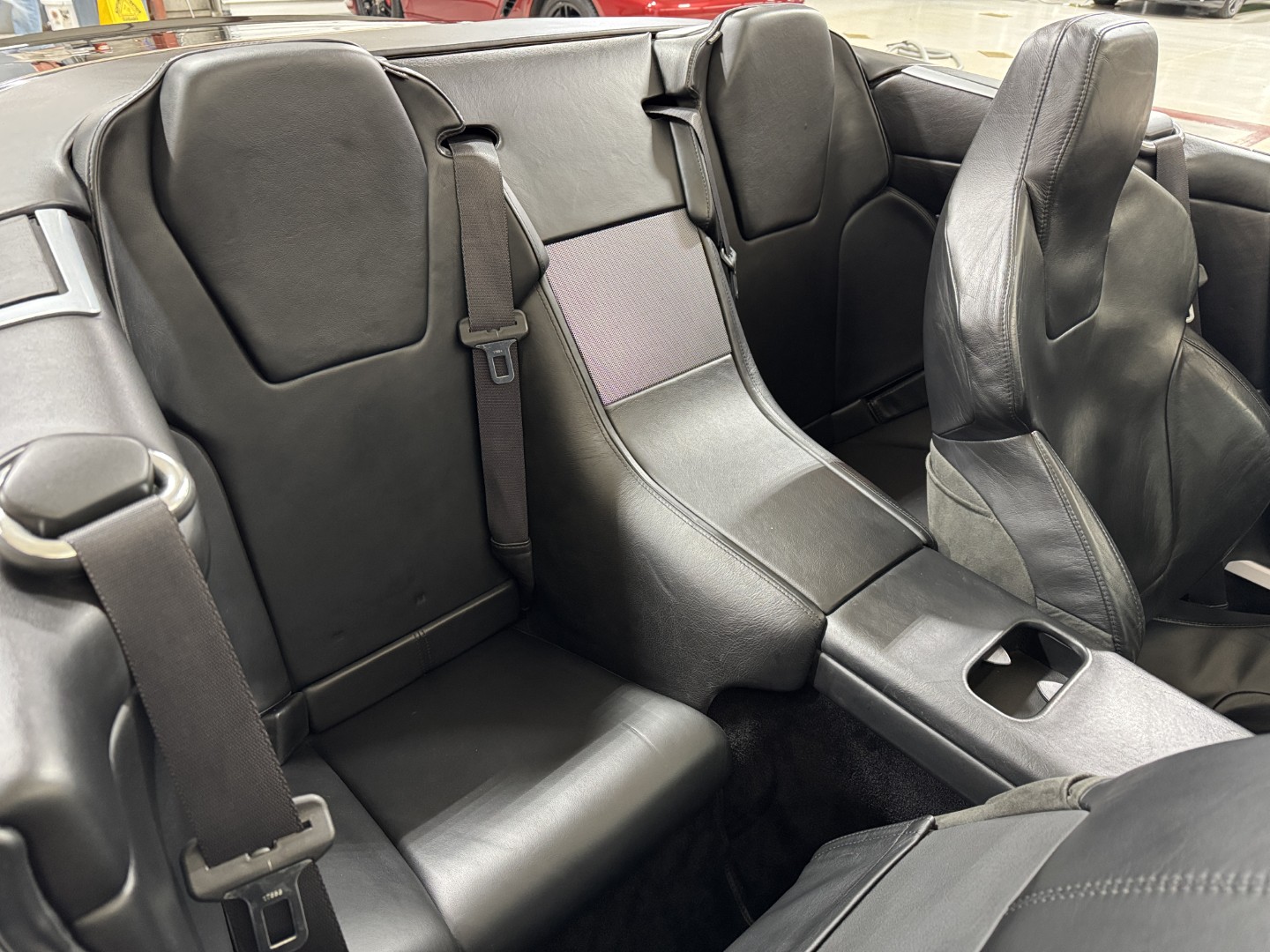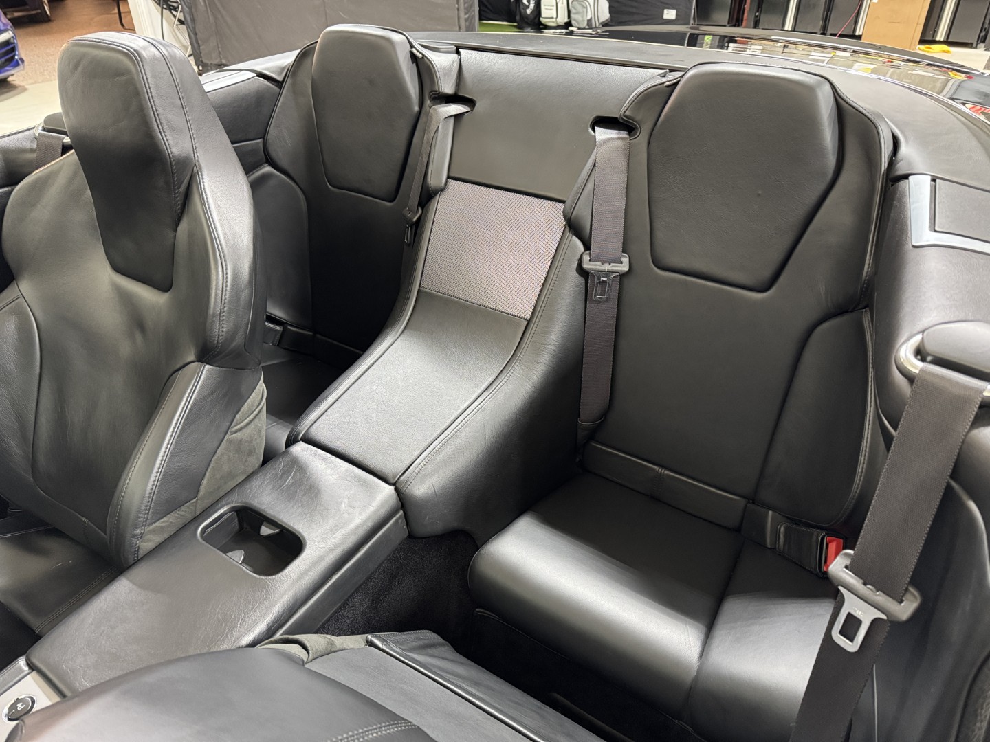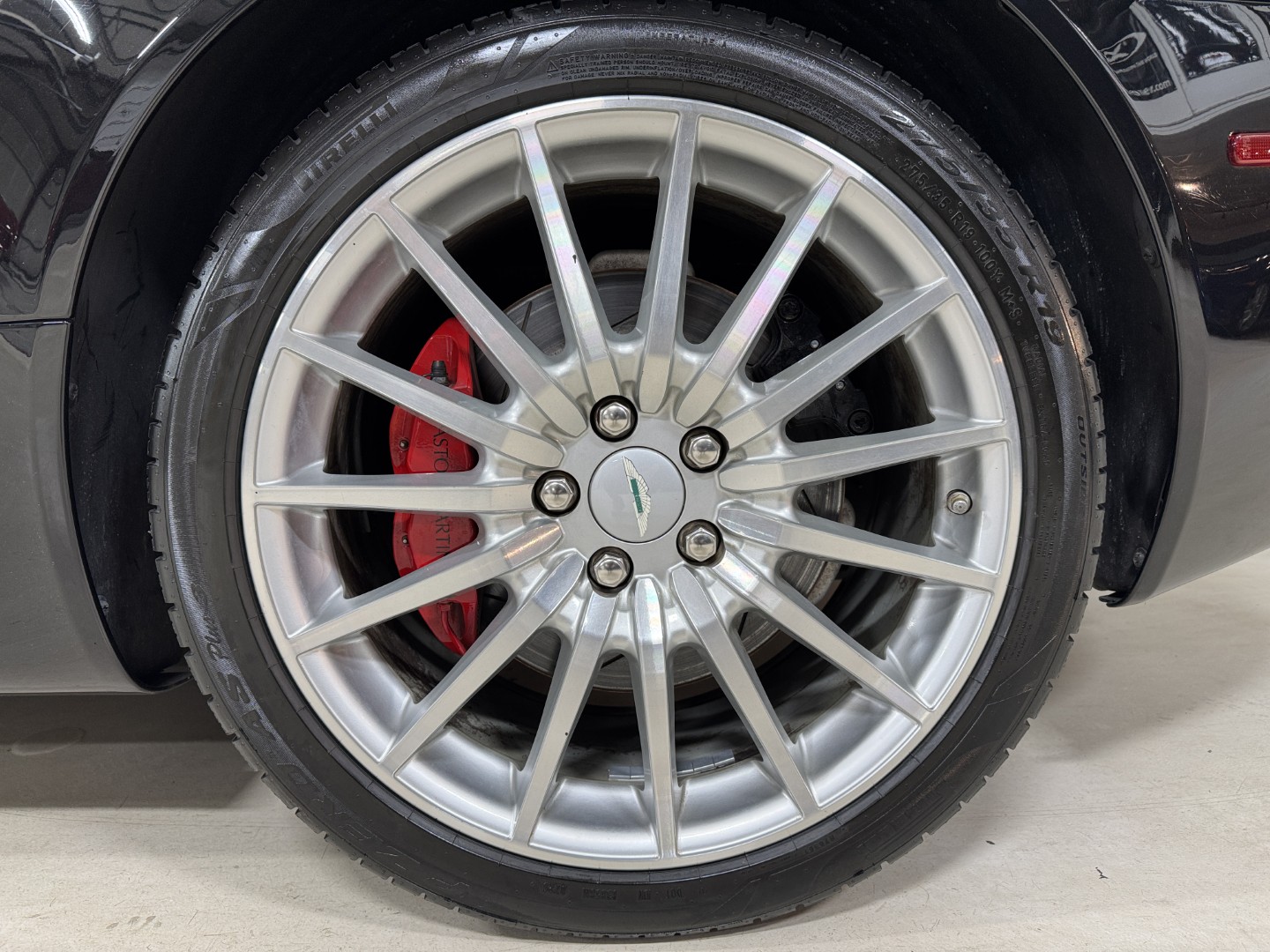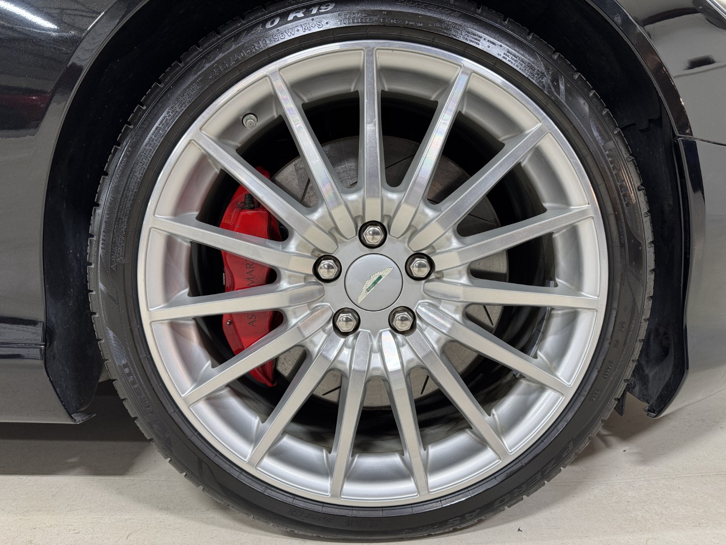 The car is finished in Jet Black with Obsidian Black leather, carpets, and stitching. It is equipped with heated seats, Linn 260W 5.1 Audio system, Rear Parking Sensors, Bluetooth phone capability, Red Brake Calipers, and more.