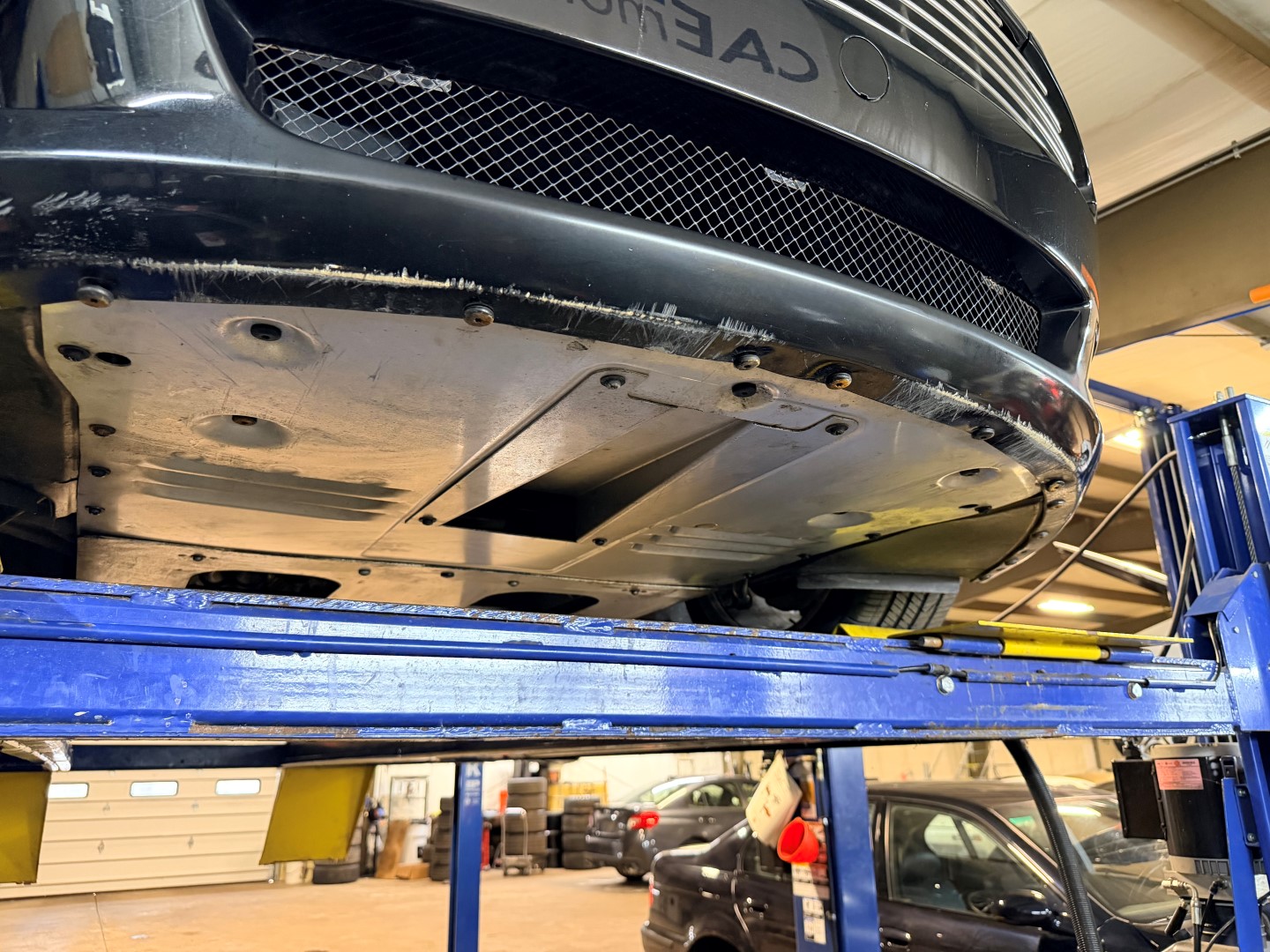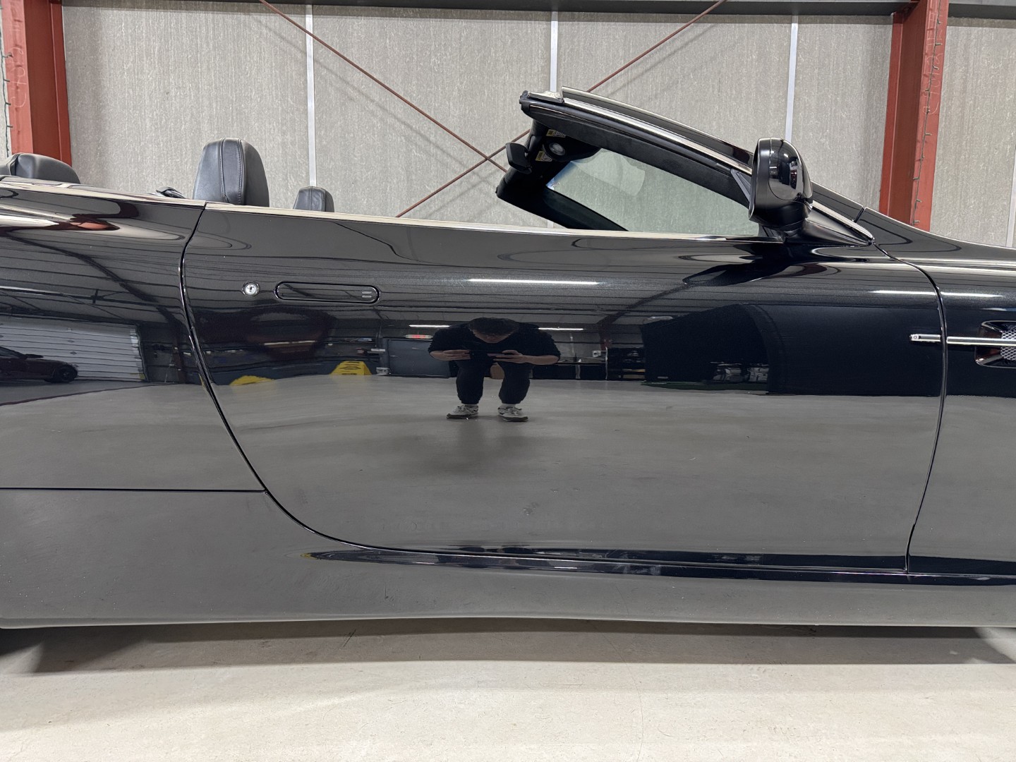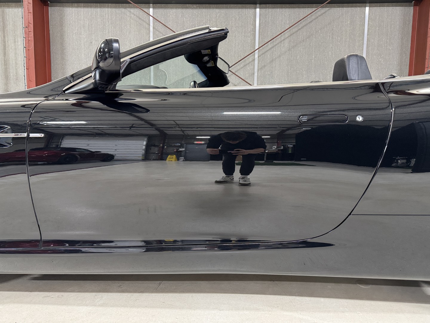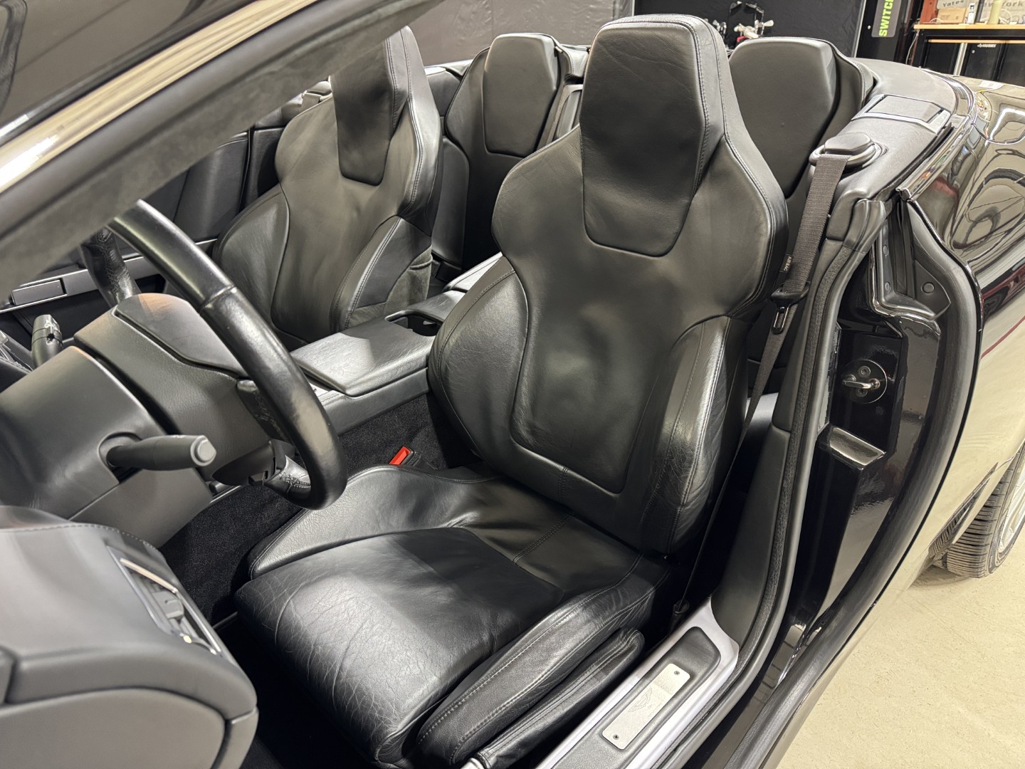 The car is finished in Jet Black with Obsidian Black leather, carpets, and stitching. It is equipped with heated seats, Linn 260W 5.1 Audio system, Rear Parking Sensors, Bluetooth phone capability, Red Brake Calipers, and more.