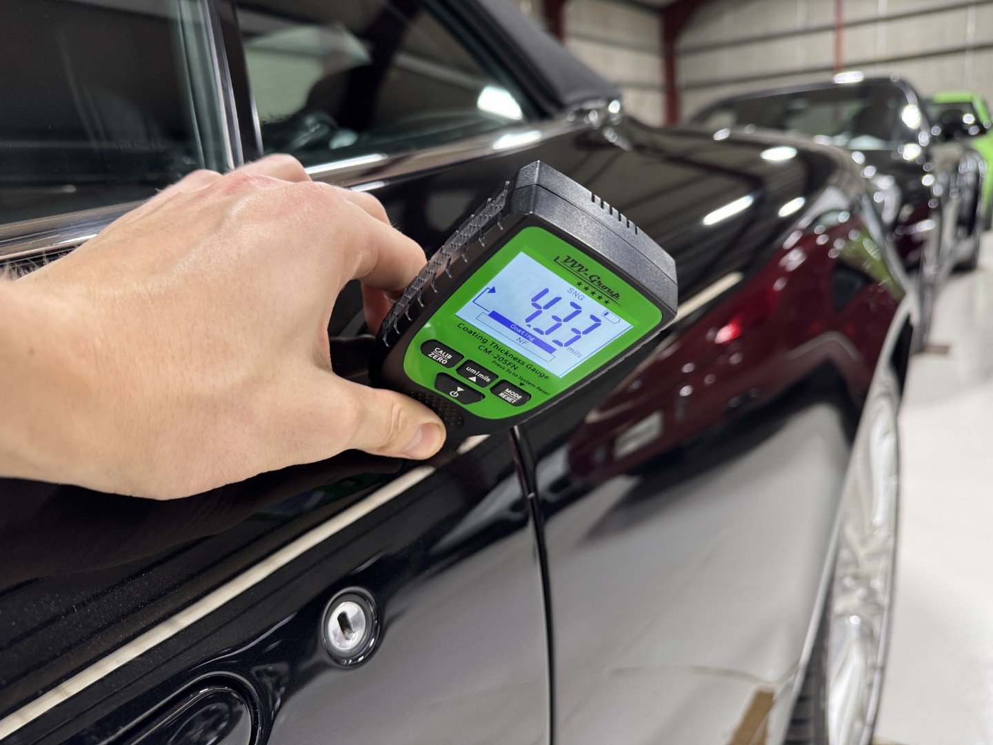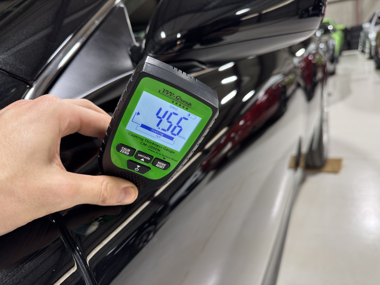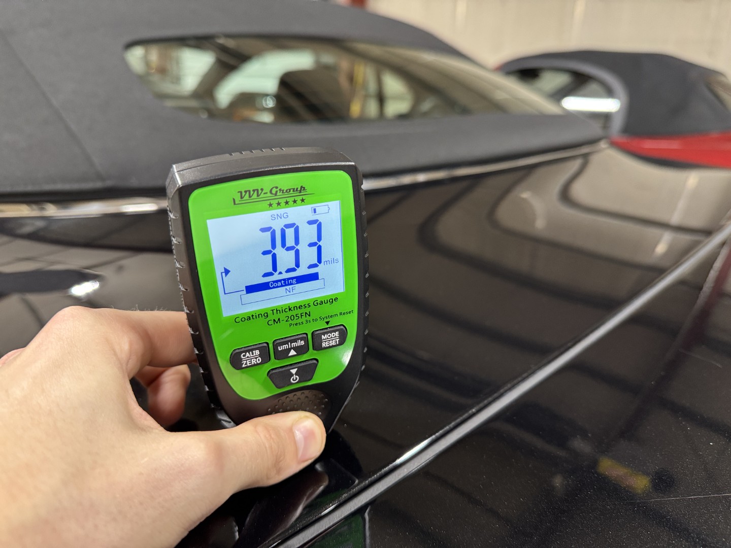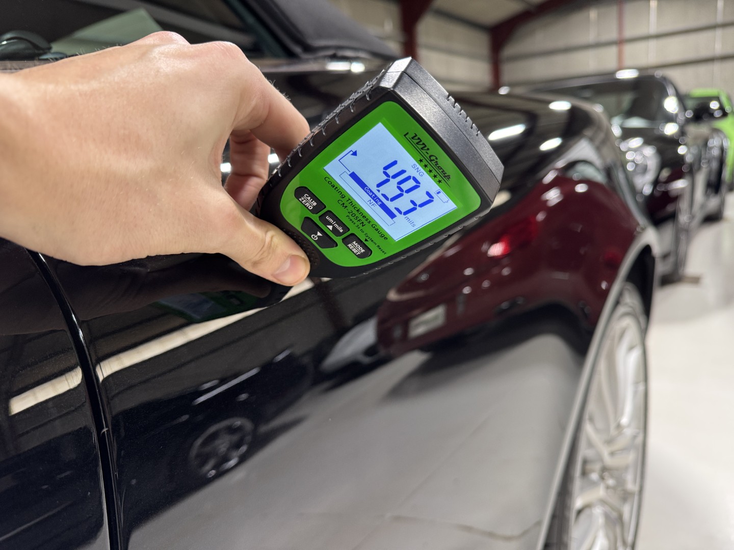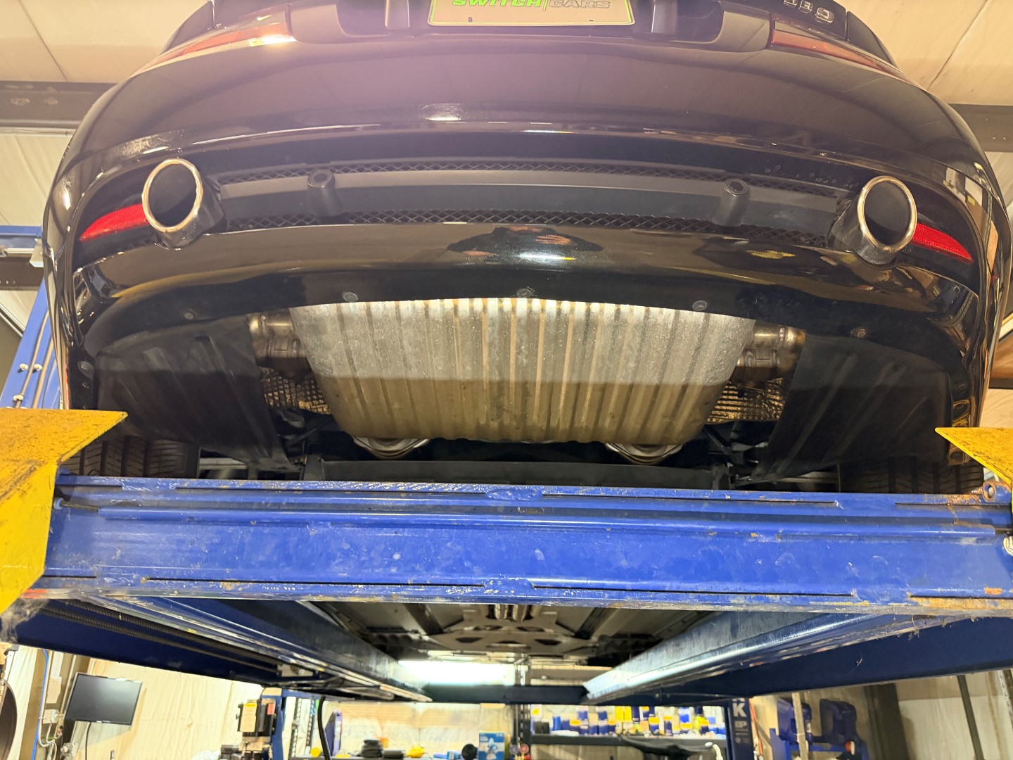 The car is finished in Jet Black with Obsidian Black leather, carpets, and stitching. It is equipped with heated seats, Linn 260W 5.1 Audio system, Rear Parking Sensors, Bluetooth phone capability, Red Brake Calipers, and more.