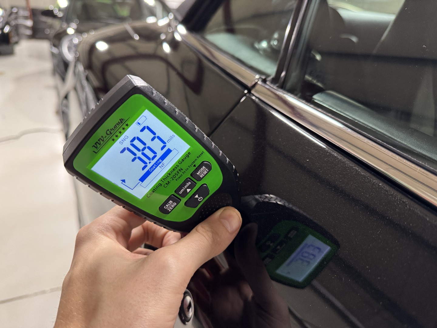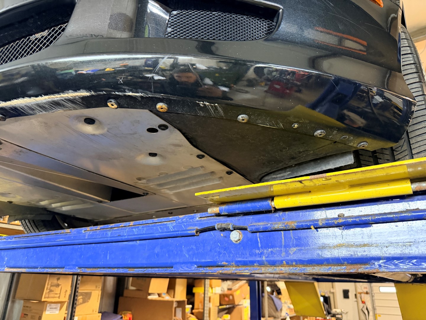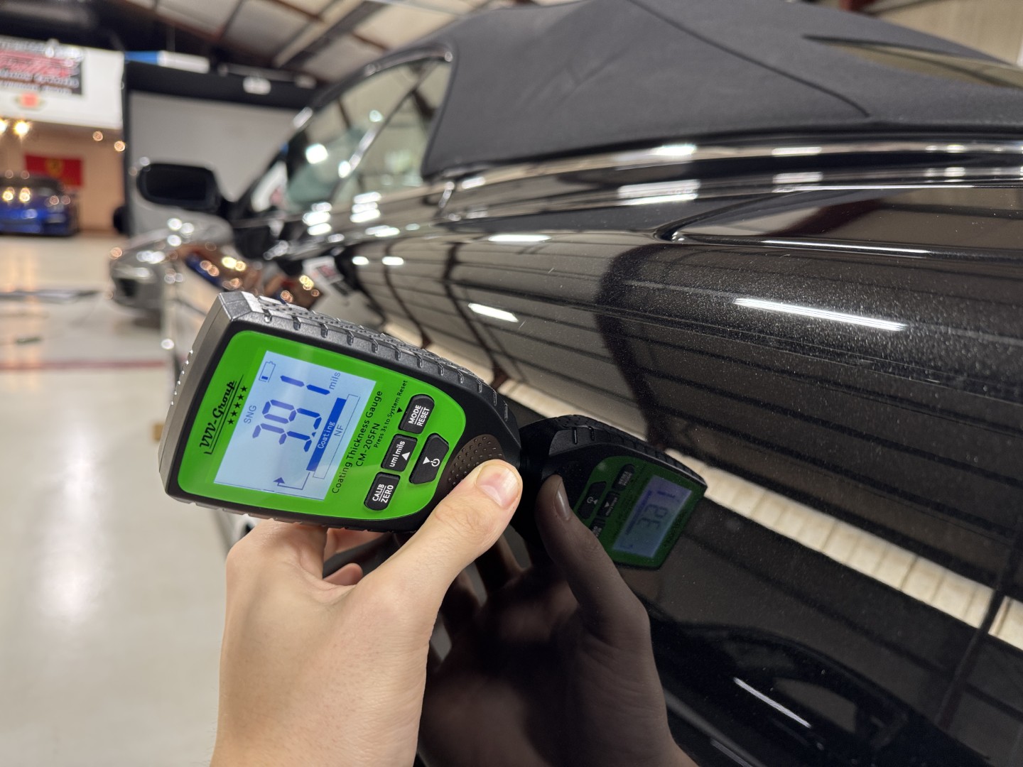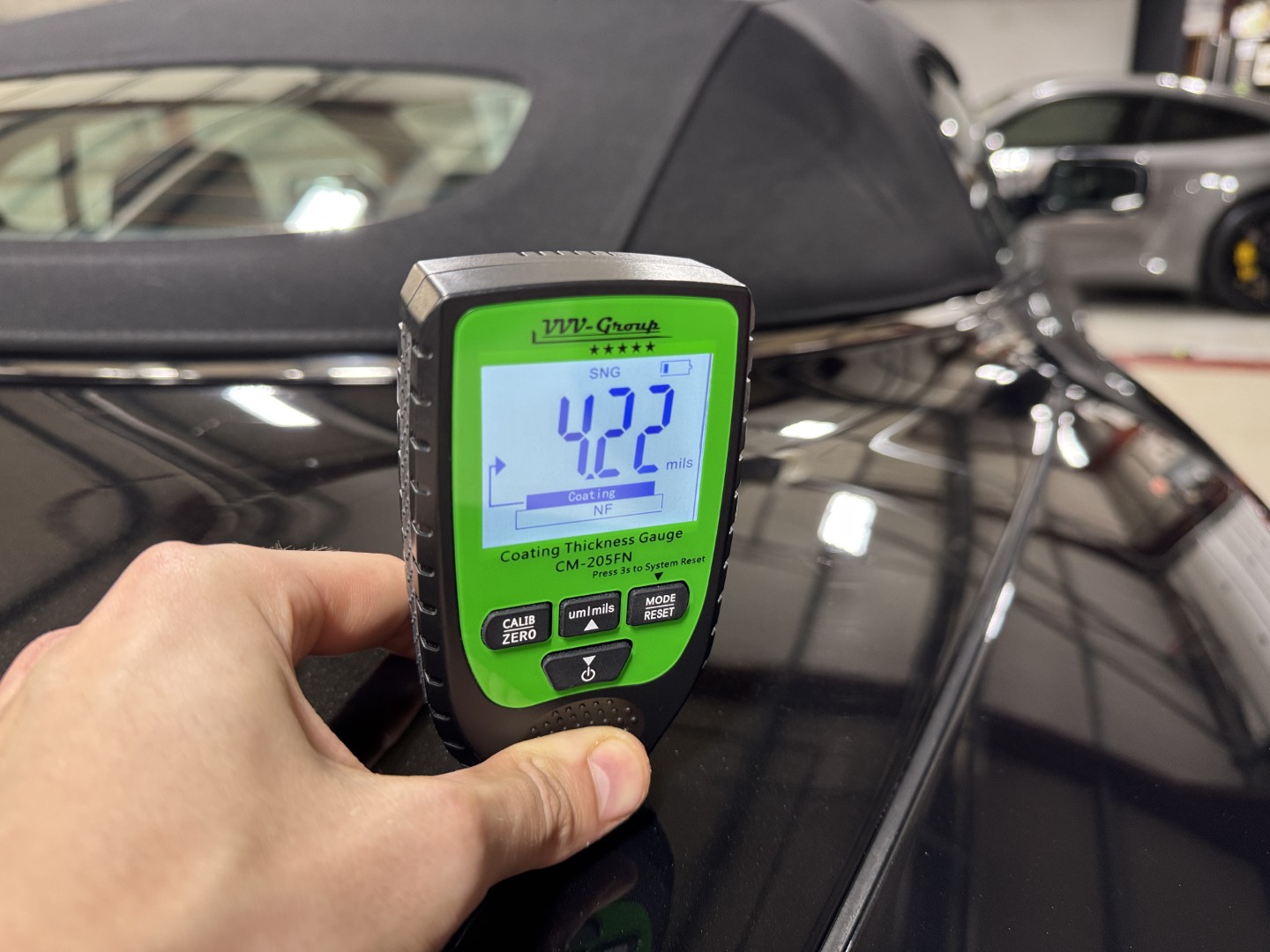 The car is finished in Jet Black with Obsidian Black leather, carpets, and stitching. It is equipped with heated seats, Linn 260W 5.1 Audio system, Rear Parking Sensors, Bluetooth phone capability, Red Brake Calipers, and more.