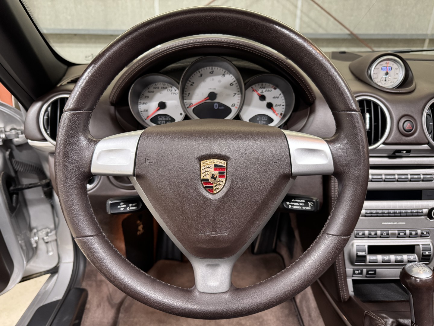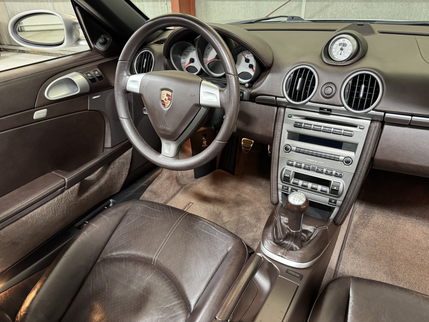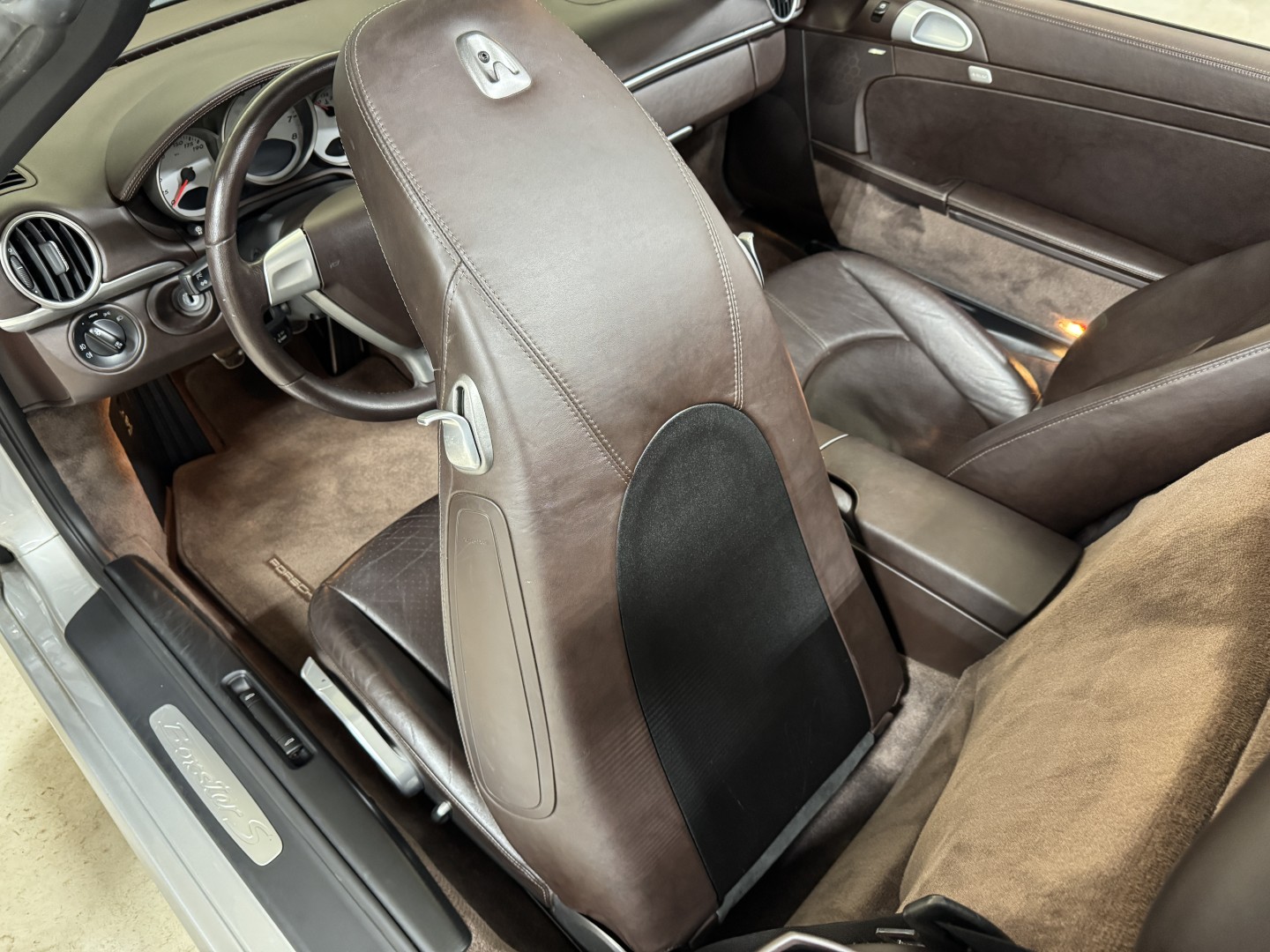 Finished in Arctic Silver Metallic over Special Leather Cocoa with a matching Cocoa convertible top, this Boxster S presents exceptionally well and is a great color combination. The exterior and interior are in excellent condition consistent with the mileage.