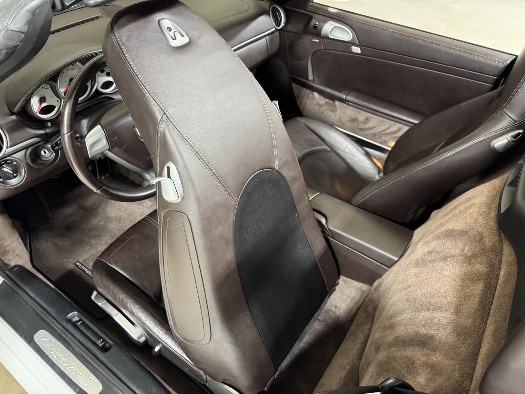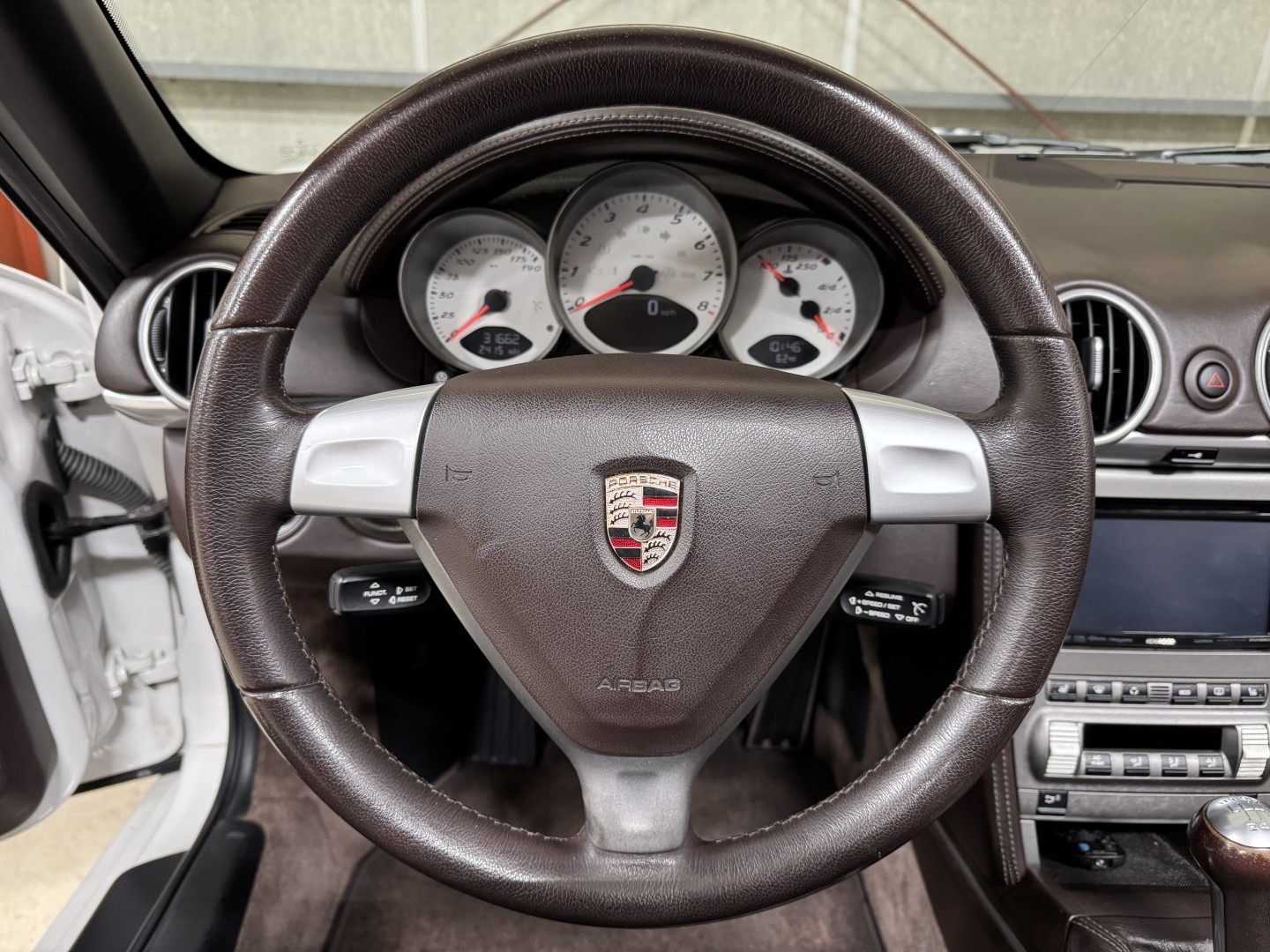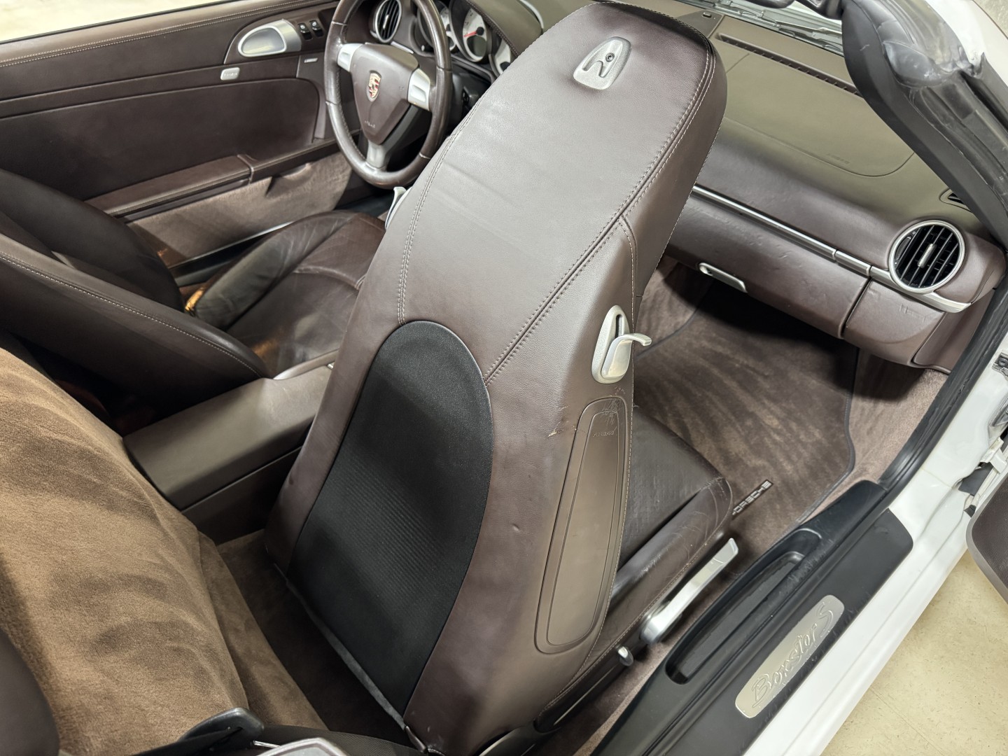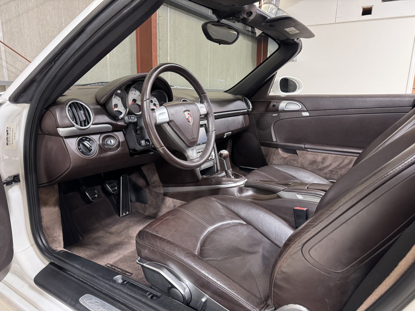 Finished in Carrara White over Special Cocoa leather with a matching Cocoa power convertible top, this example is a well-optioned and nicely preserved 987.