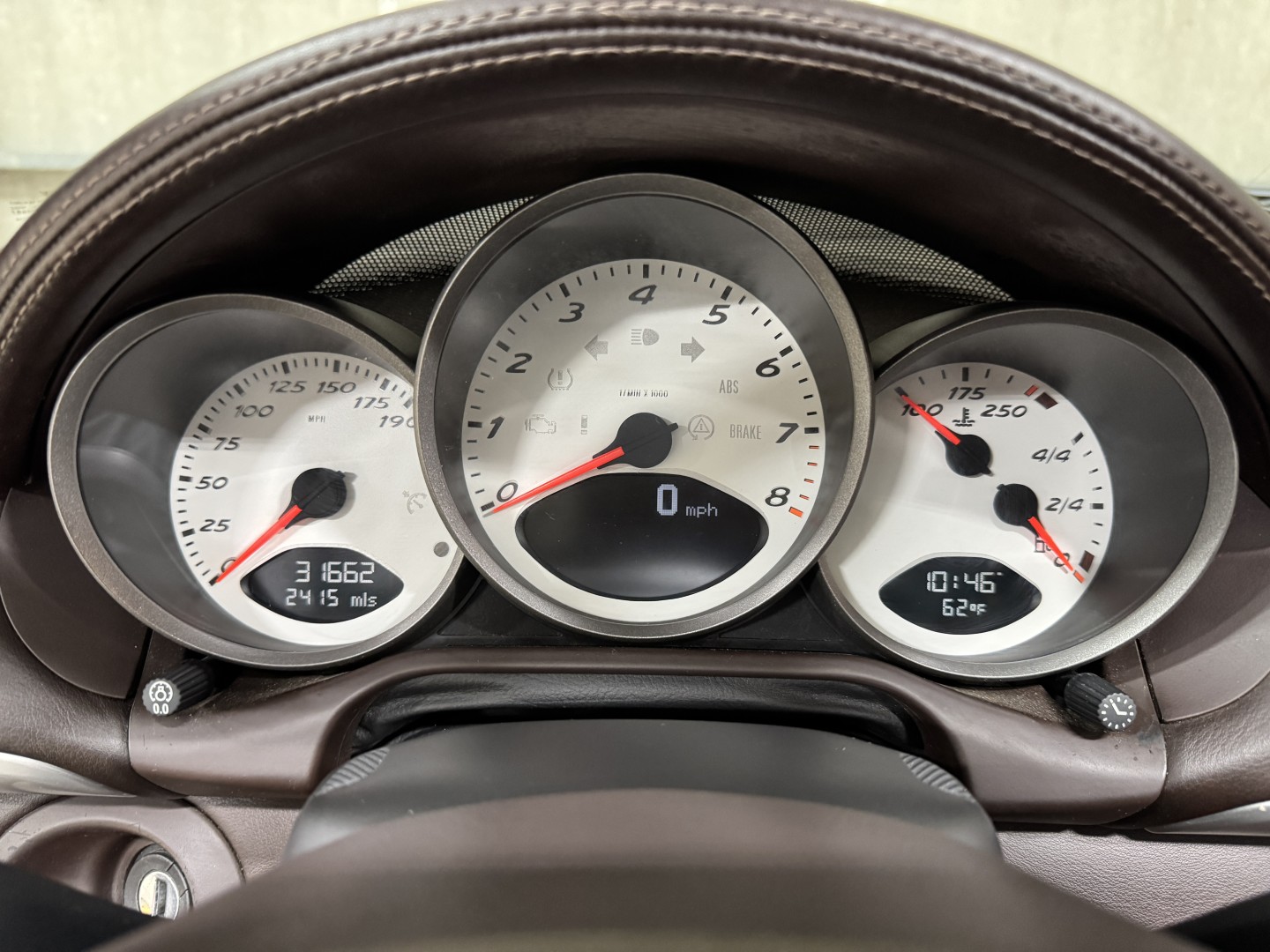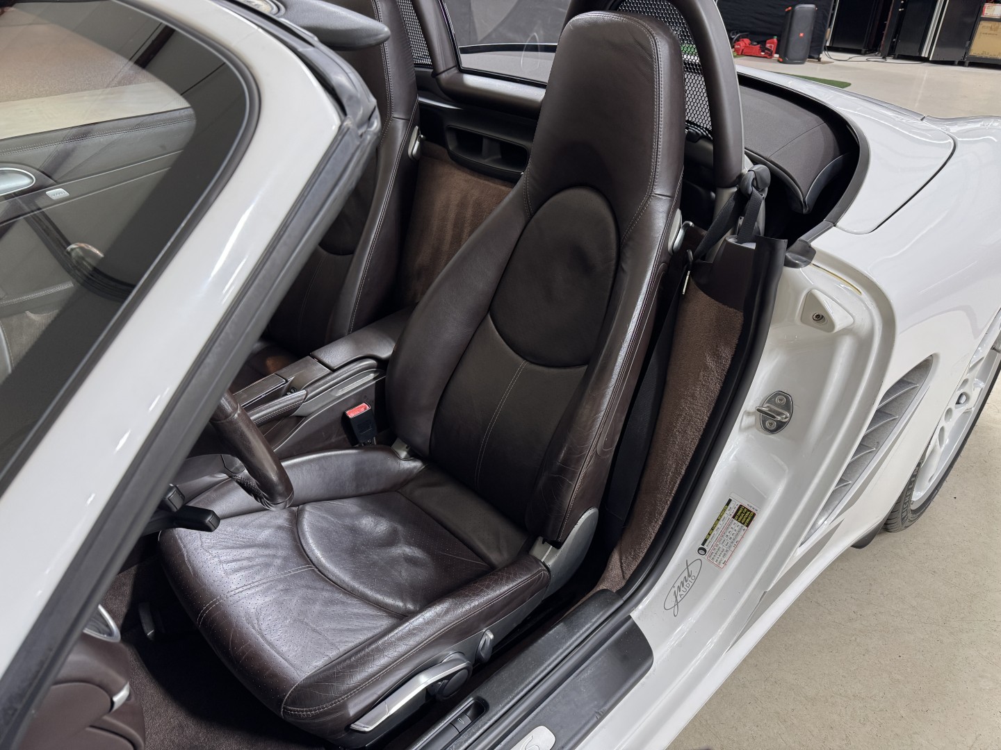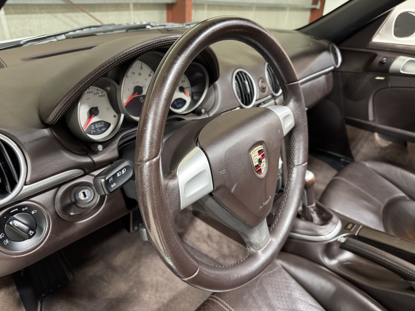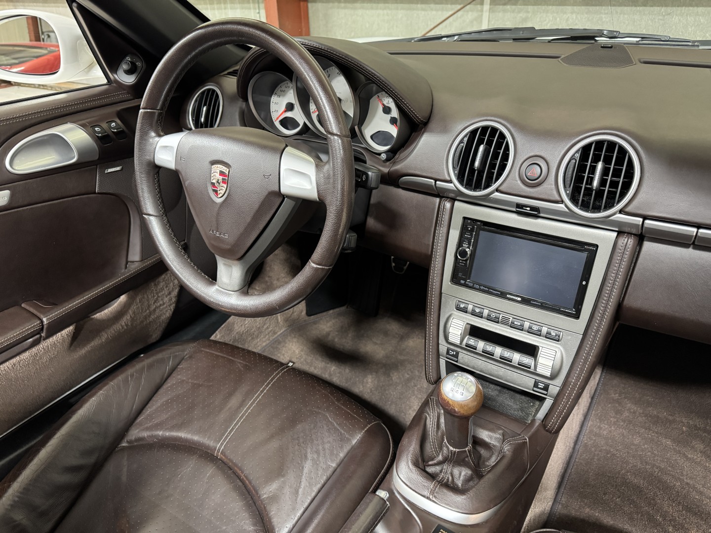 Finished in Carrara White over Special Cocoa leather with a matching Cocoa power convertible top, this example is a well-optioned and nicely preserved 987.