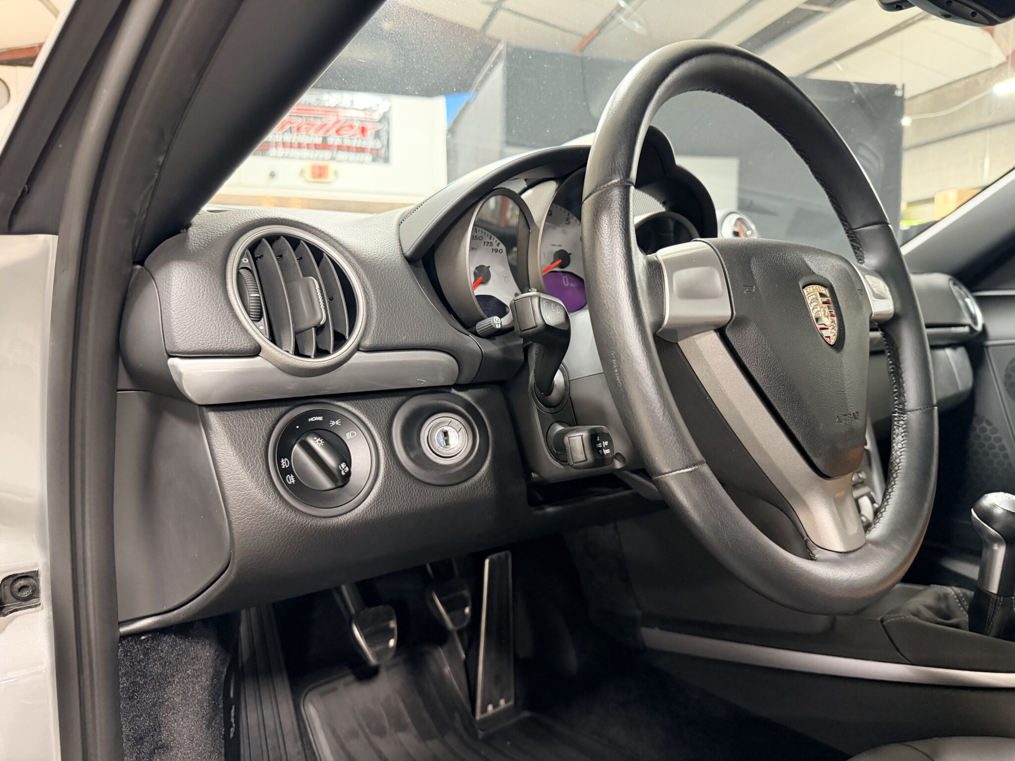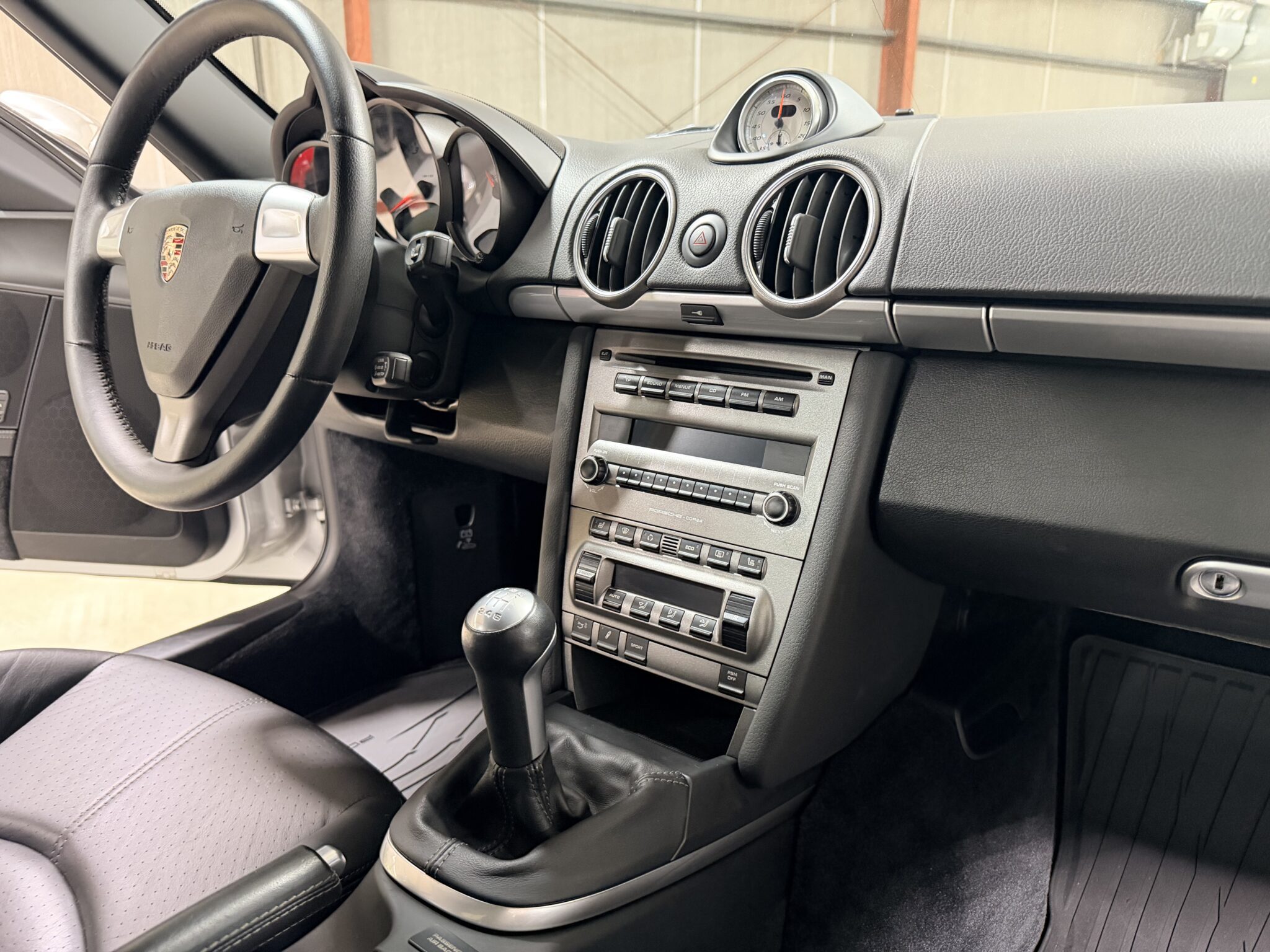 2007 Porsche Cayman S with only 13,000 original miles! Finished in Arctic Silver Metallic over Black leather with Adaptive Sport seats and powered by a 3.4-liter engine paired with a 6-speed manual transaxle. Some notable equipment includes: Sport chrono package, bi-xenon headlamps, heated adaptive sport seats, PASM, Bose high end sound package, and 19” Carrera S wheels.