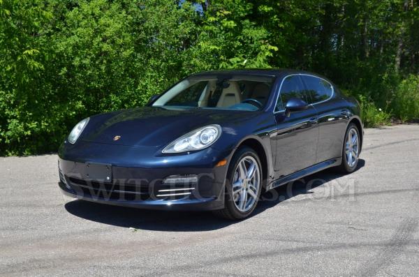 2012 Porsche Panamera 4S painted in Dark Blue Metallic with Yacht blue/cream interior. The Panamera 4S is all wheel drive and produces 400hp from a 4.8L V8 engine. This car has a 7-speed PDK transmission, heated front seats and steering wheel, adaptive air ride suspension, a sport exhaust, and much more.