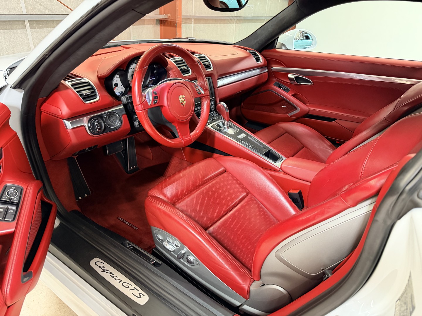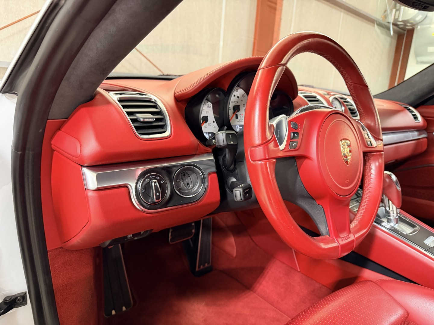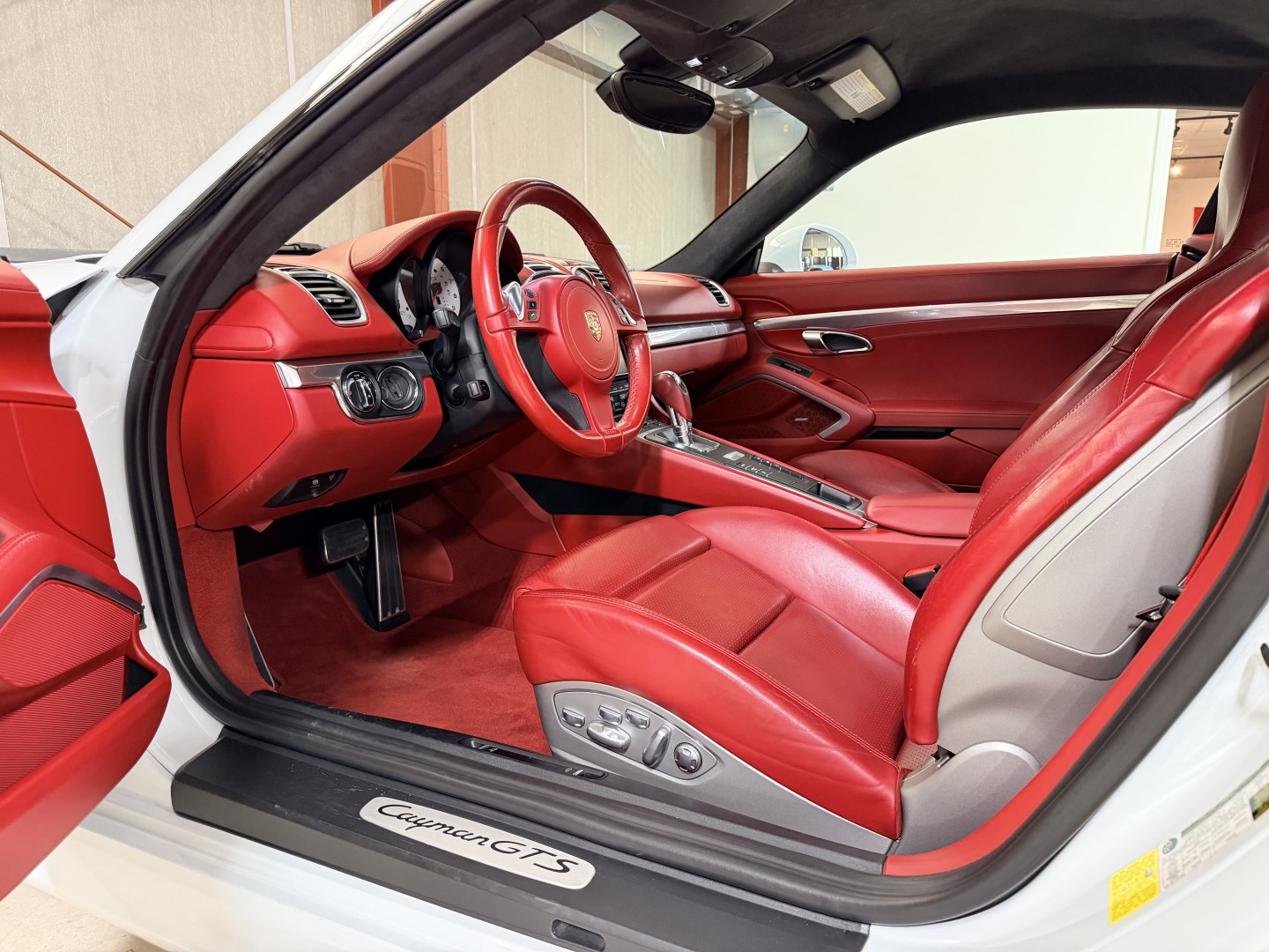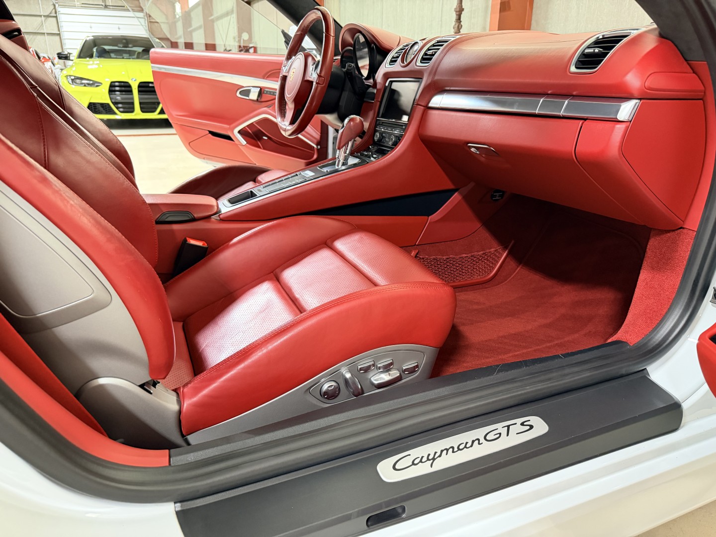 2015 Porsche Cayman GTS with just under 29k miles! Finished in Carrara White exterior over Garnet Red natural leather interior w/adaptive sport seats. Power is provided by a 3.4-liter naturally aspirated flat-six paired with a 7-speed PDK dual-clutch transmission.