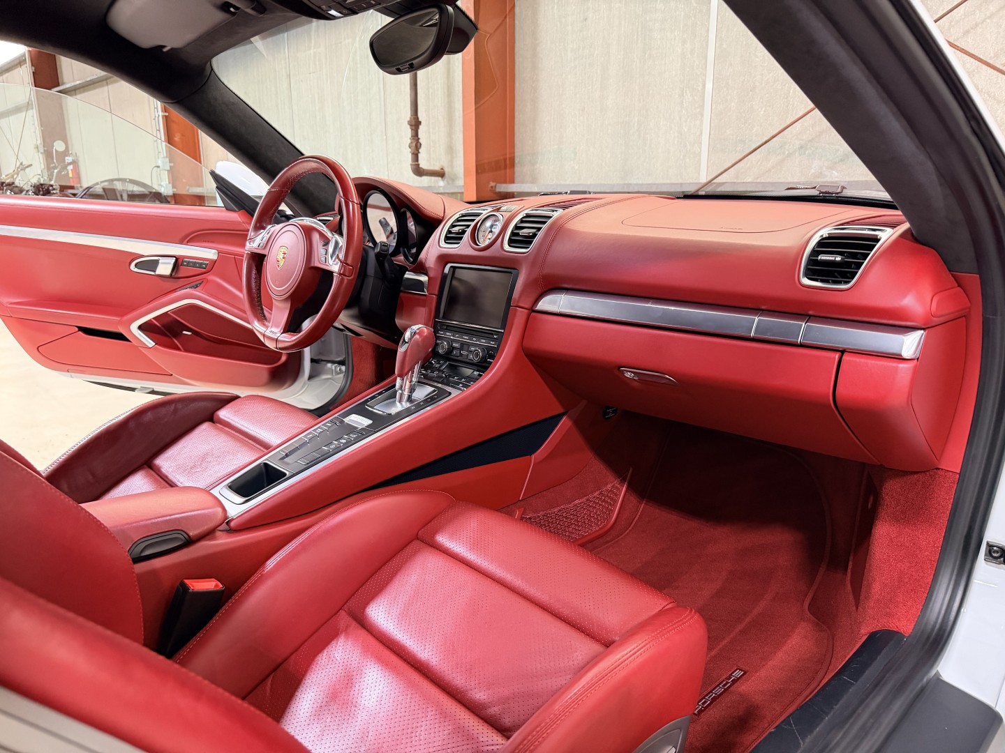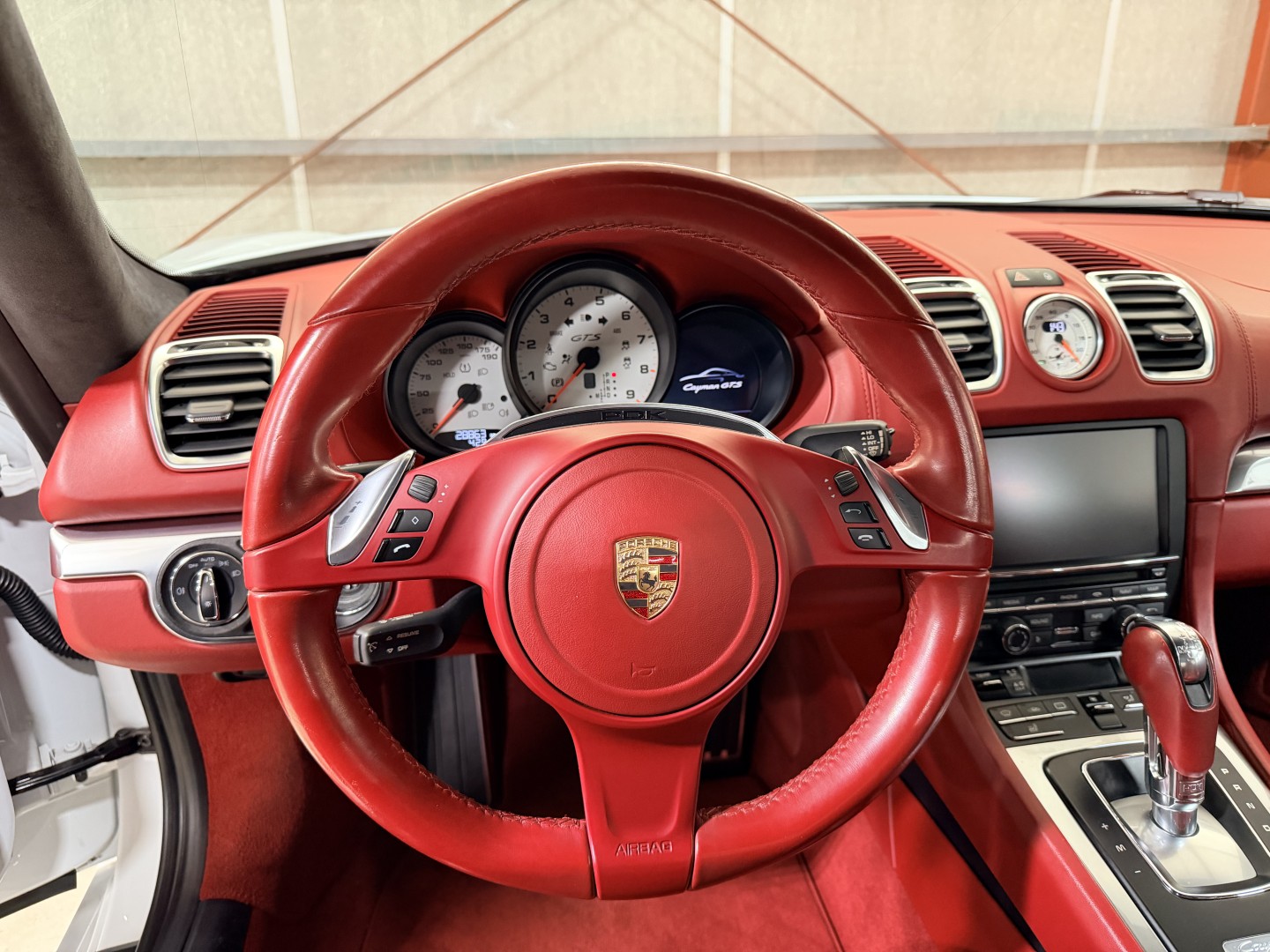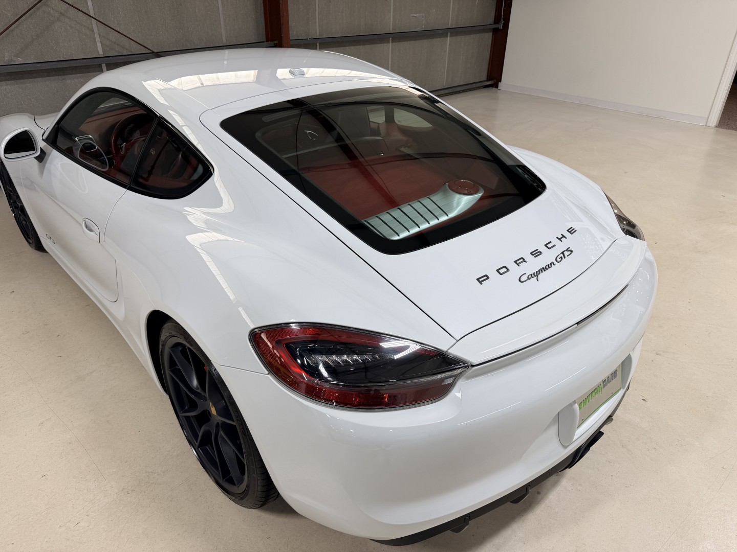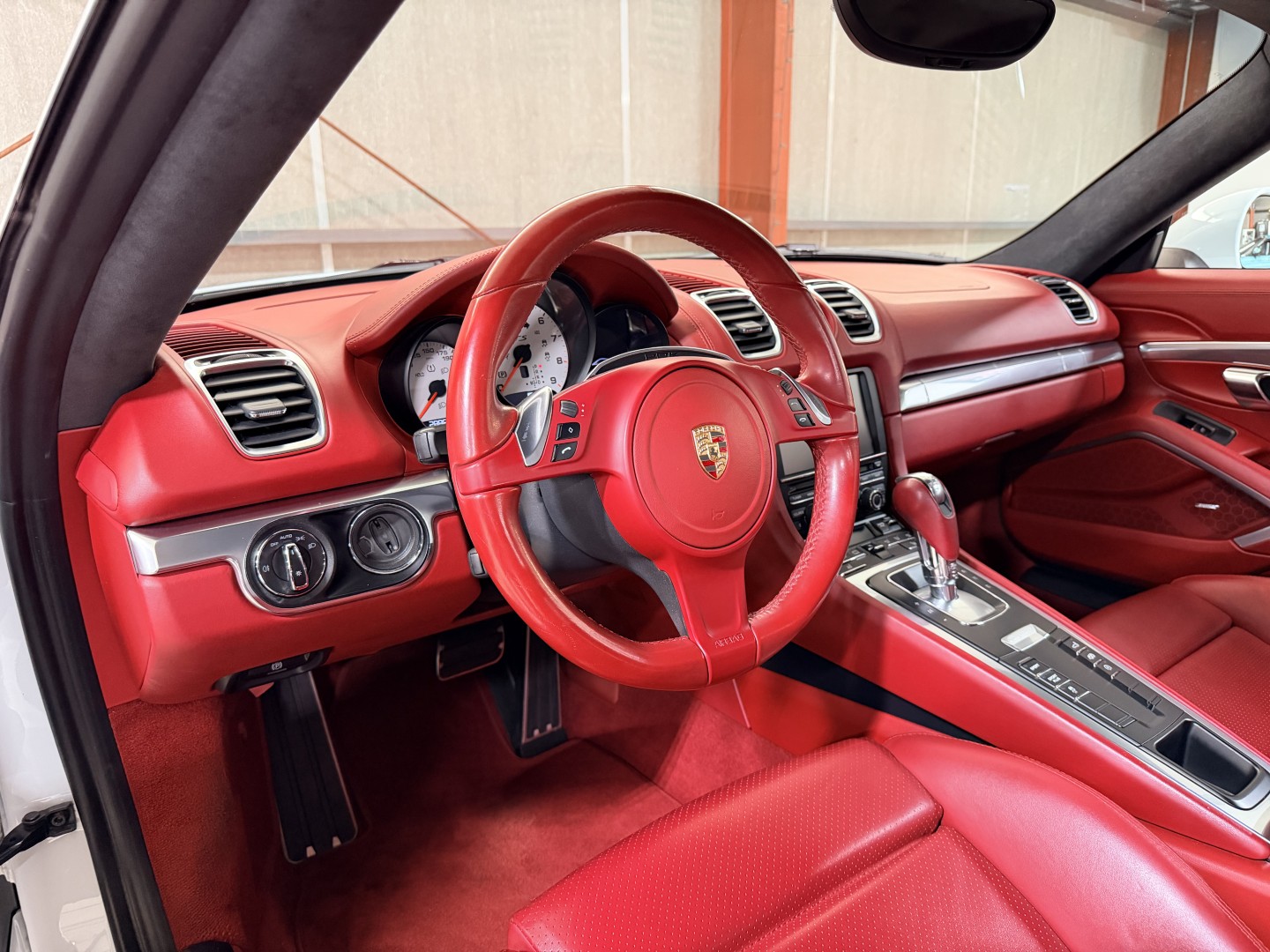 2015 Porsche Cayman GTS with just under 29k miles! Finished in Carrara White exterior over Garnet Red natural leather interior w/adaptive sport seats. Power is provided by a 3.4-liter naturally aspirated flat-six paired with a 7-speed PDK dual-clutch transmission.