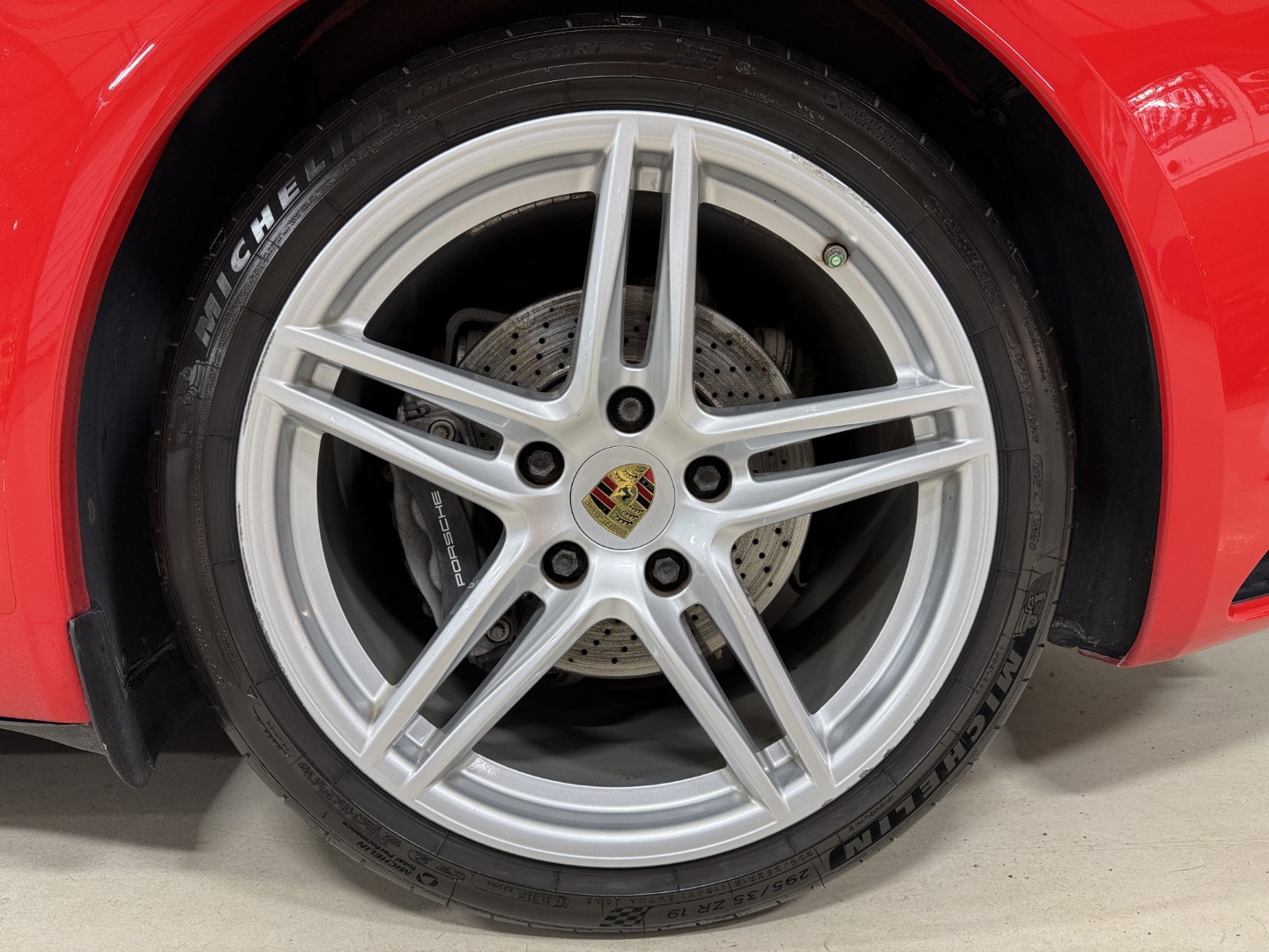 446 Wheel center caps with colored Porsche Crest