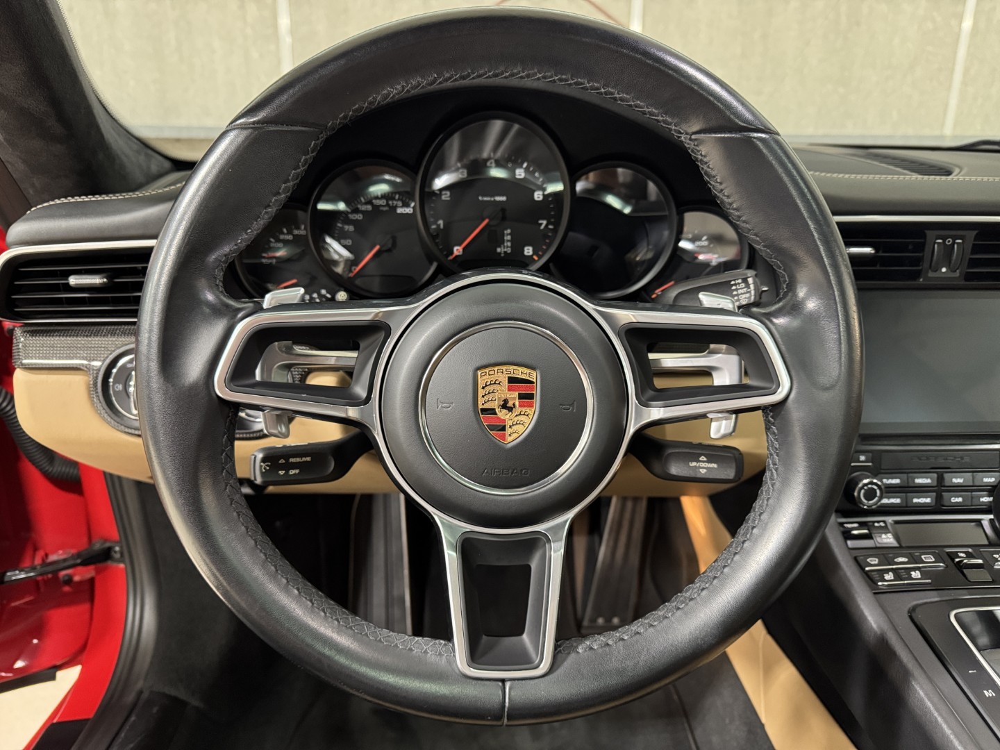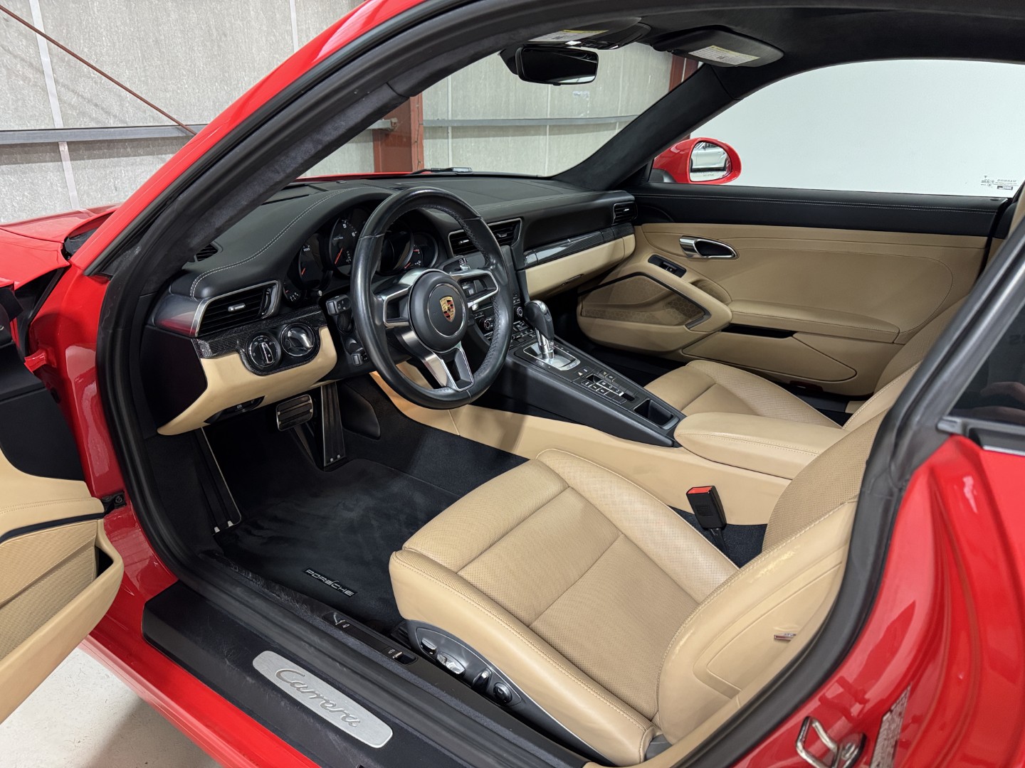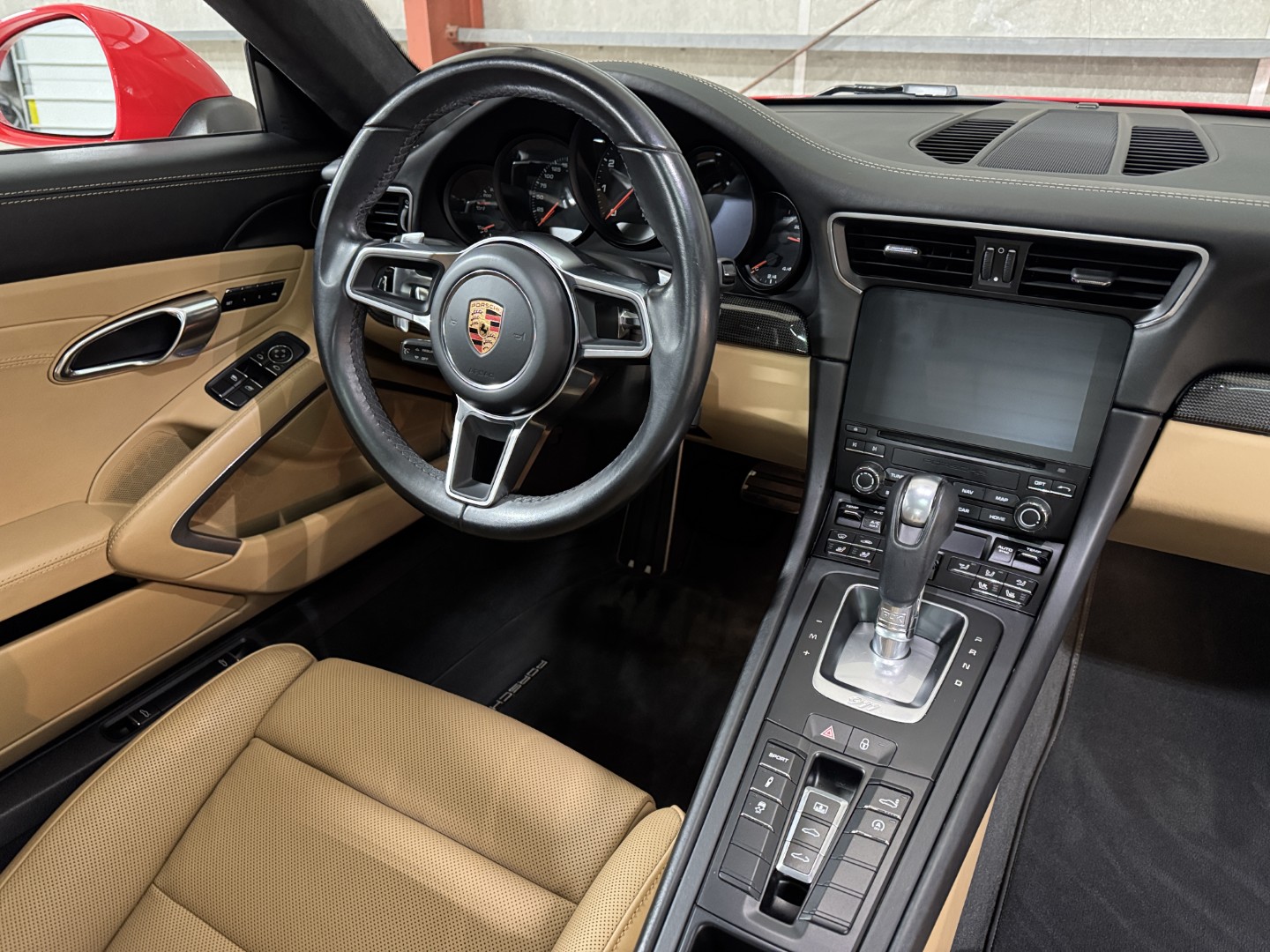 2018 Porsche 911 Carrera with 63k miles. The 991.2 Carrera is powered by a 3.0L twin-turbo flat-six this one is paired with a 7-speed PDK transmission. The exterior is finished in Guards Red over Black/Luxor Beige interior. The full list of factory options is listed below!