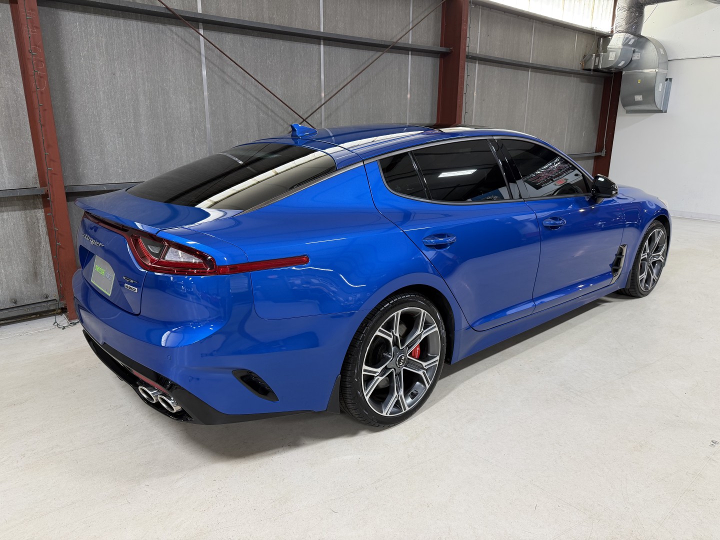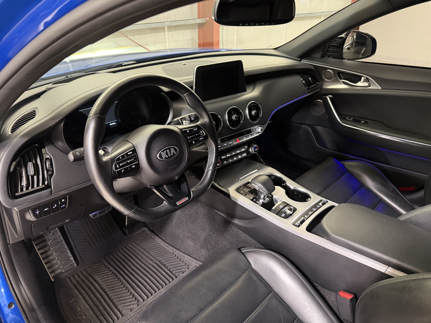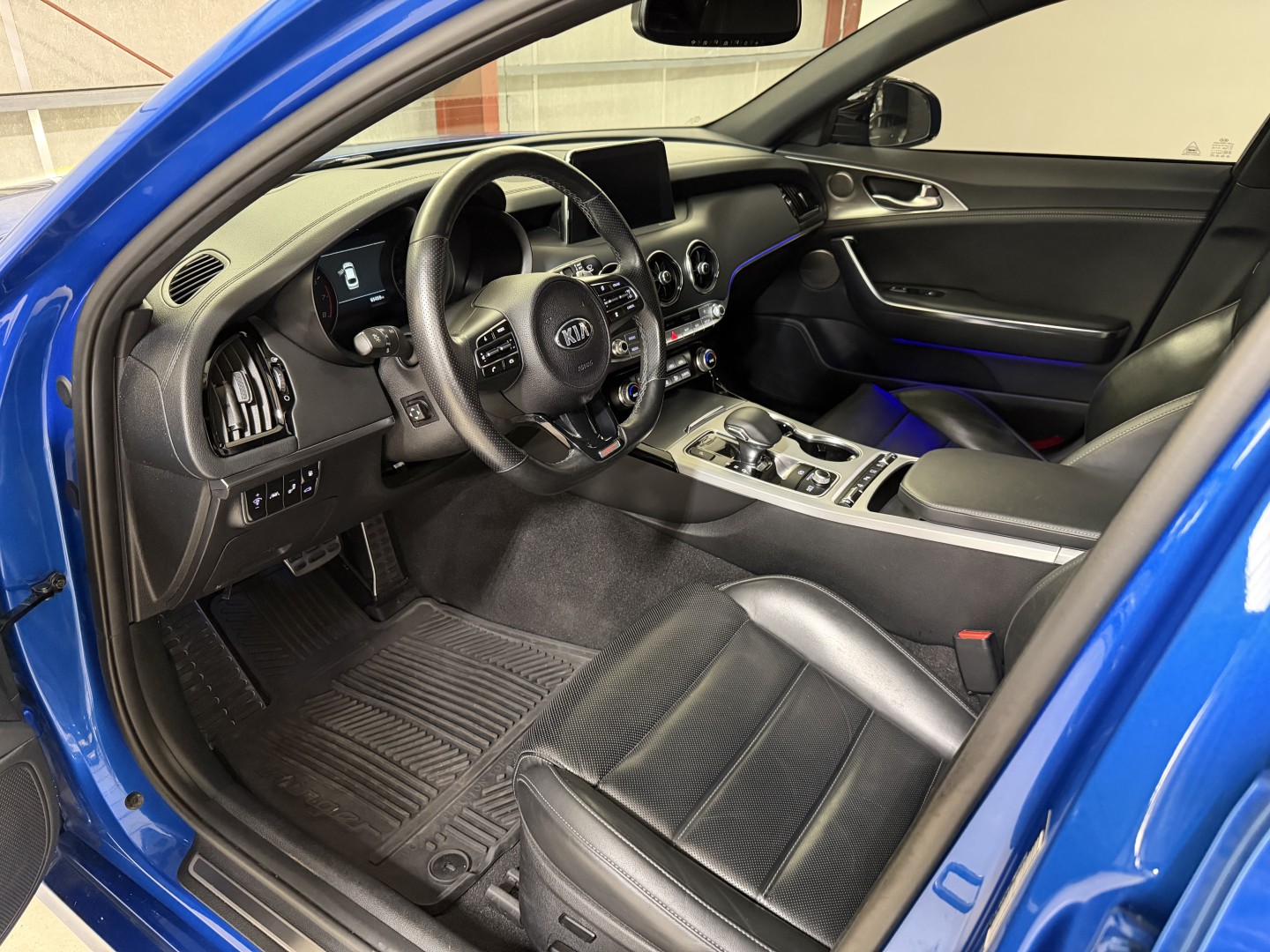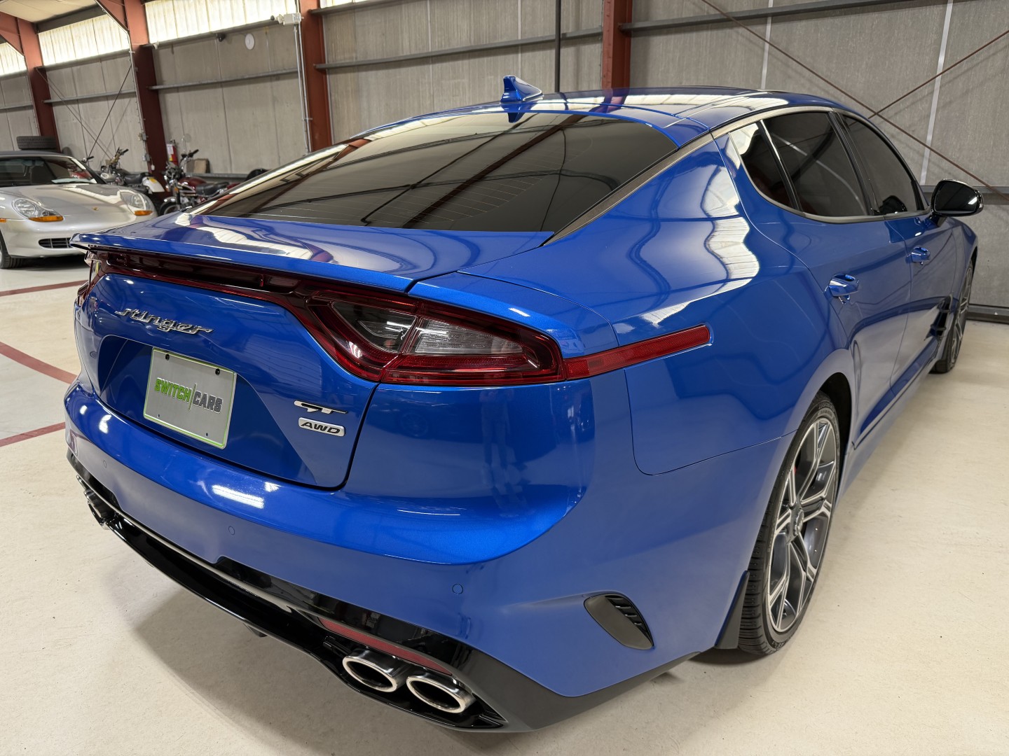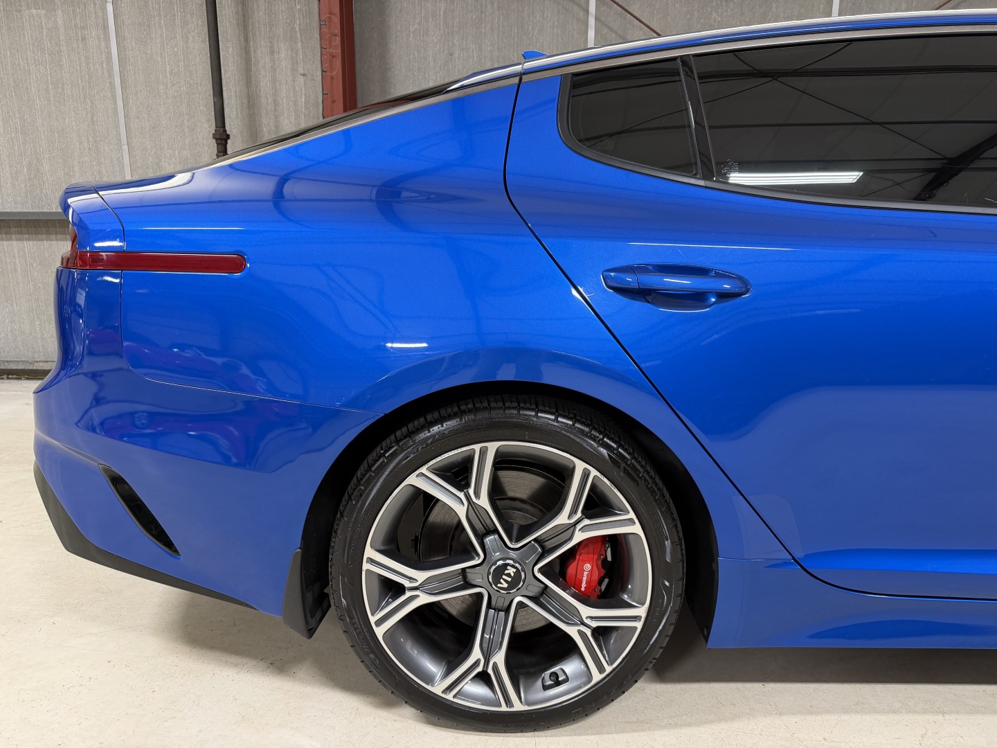 Finished in Micro Blue over a Black interior, this GT2 represents the top trim level of the Stinger lineup. Power comes from a twin-turbocharged 3.3-liter V6 paired with an 8-speed automatic transmission and all-wheel drive, delivering strong performance along with everyday usability. Factory-equipped with Brembo brakes, adaptive suspension, and drive mode select, the Stinger GT2 offers a well-balanced driving experience.