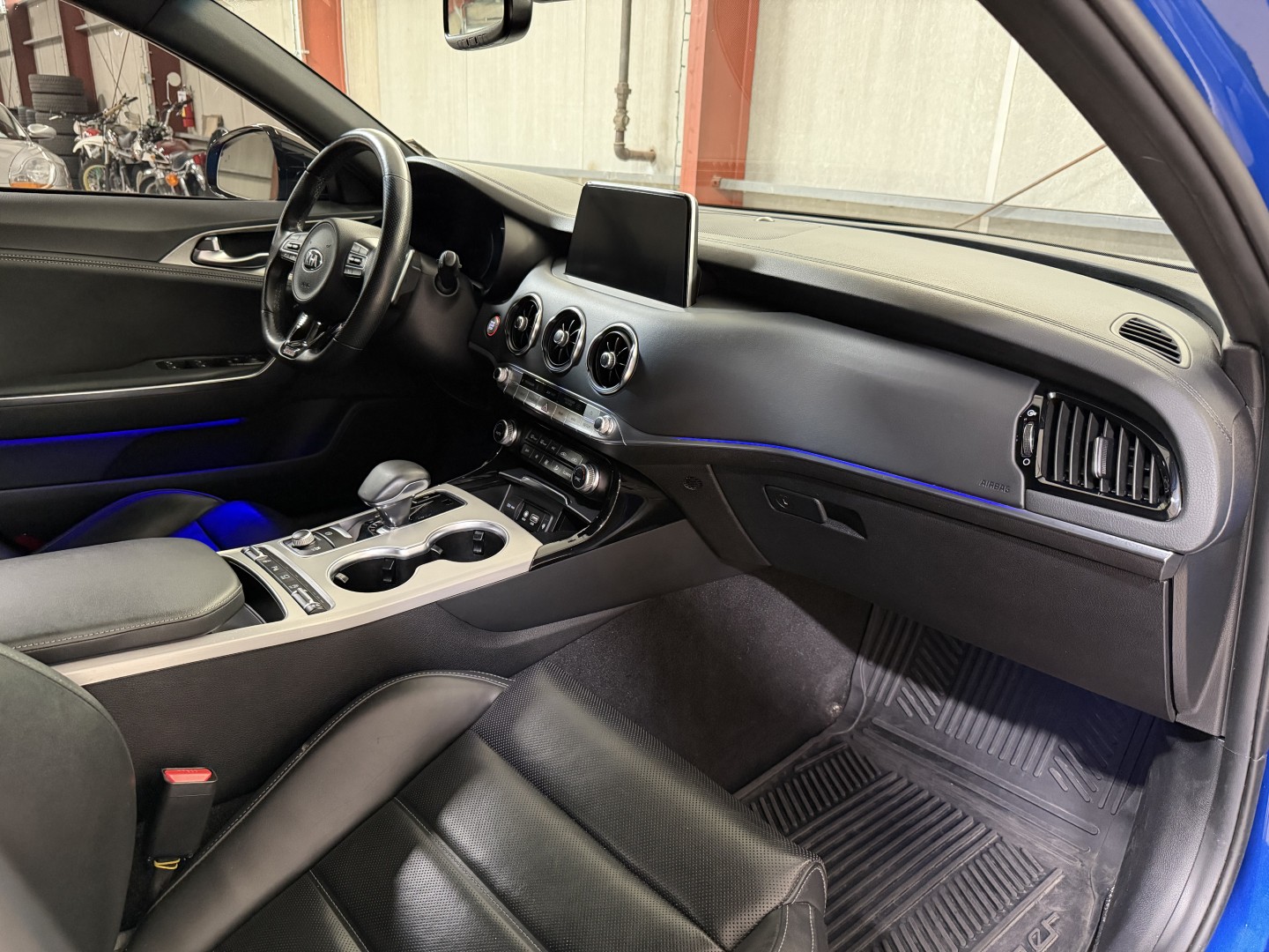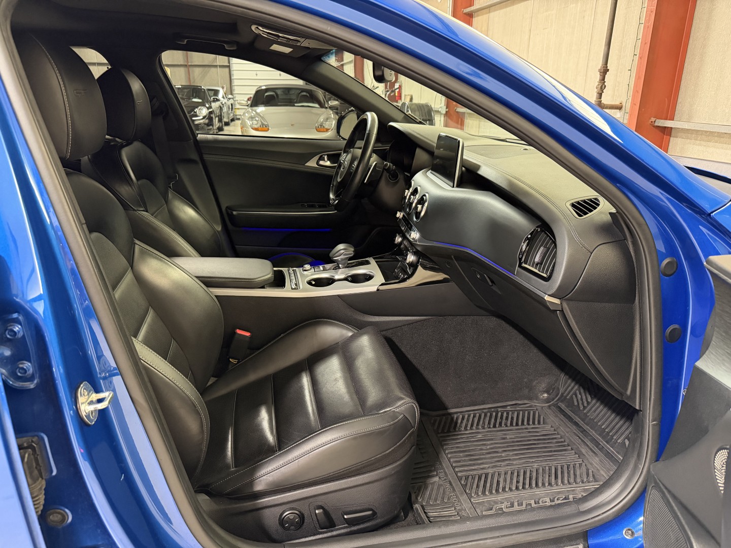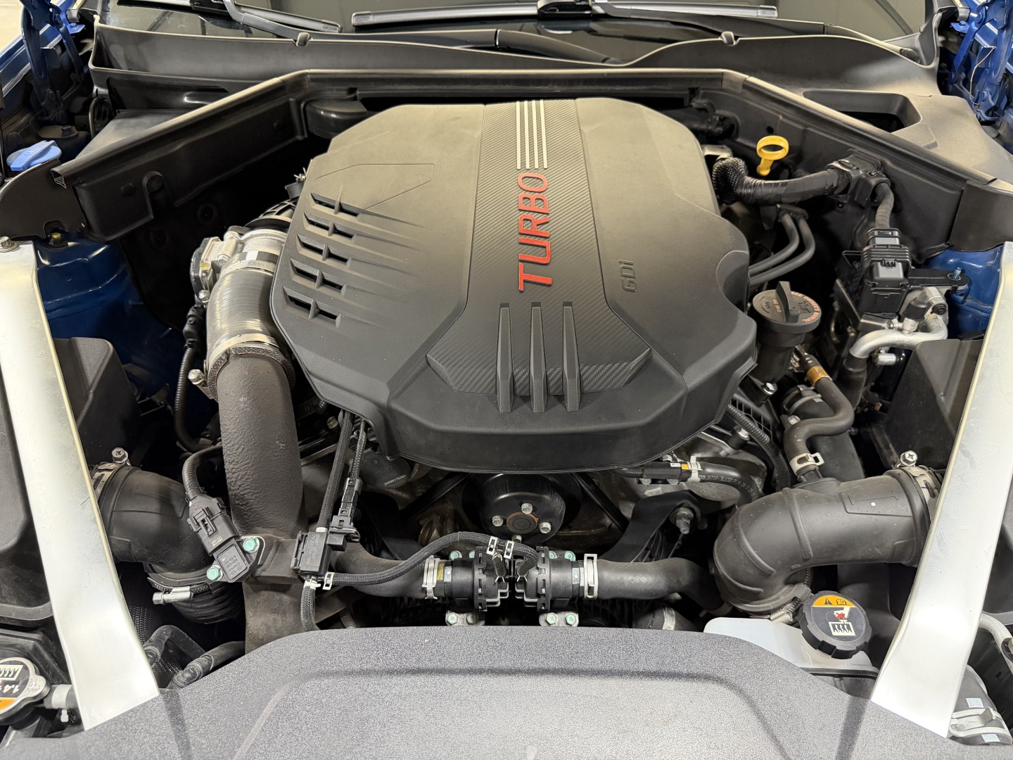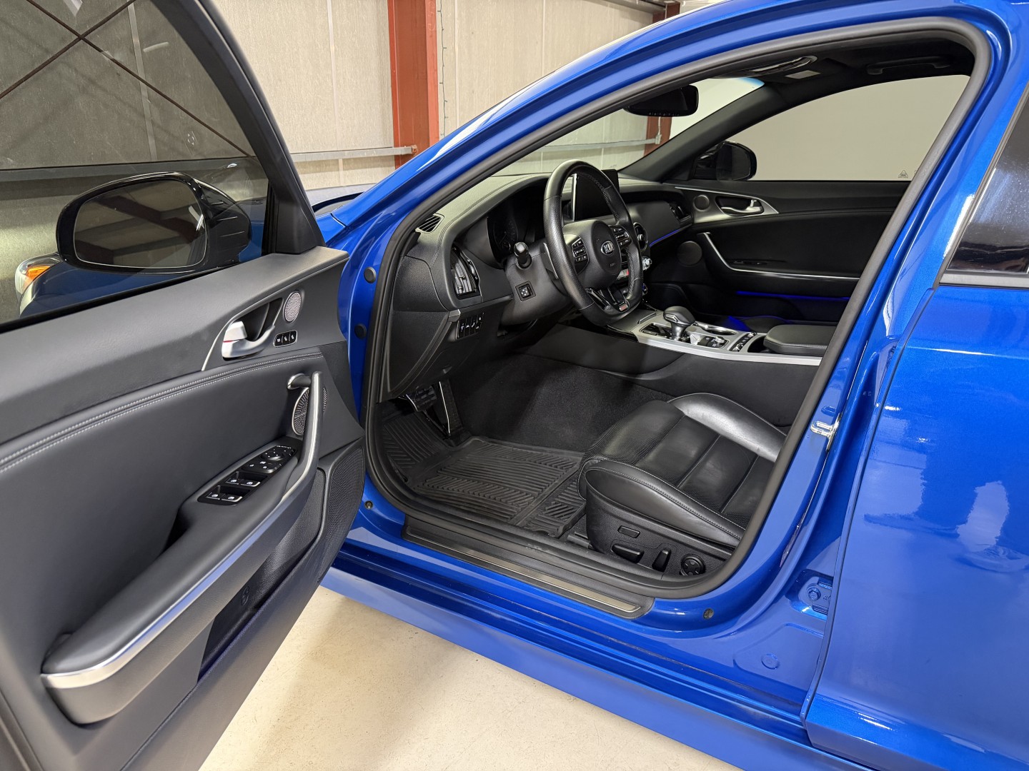 Finished in Micro Blue over a Black interior, this GT2 represents the top trim level of the Stinger lineup. Power comes from a twin-turbocharged 3.3-liter V6 paired with an 8-speed automatic transmission and all-wheel drive, delivering strong performance along with everyday usability. Factory-equipped with Brembo brakes, adaptive suspension, and drive mode select, the Stinger GT2 offers a well-balanced driving experience.