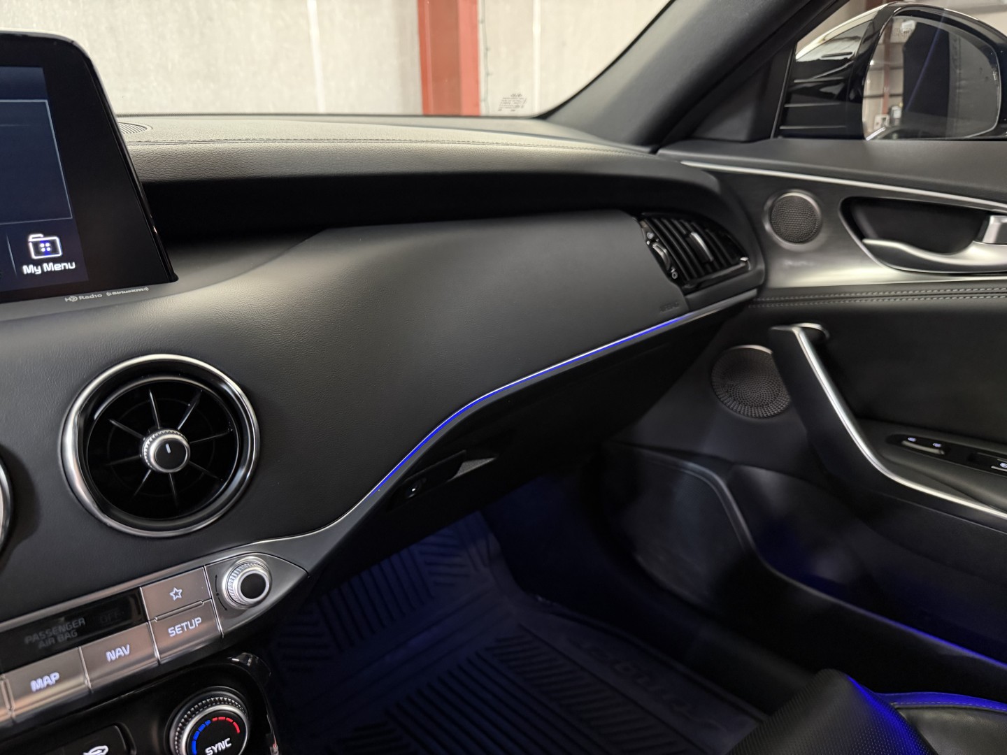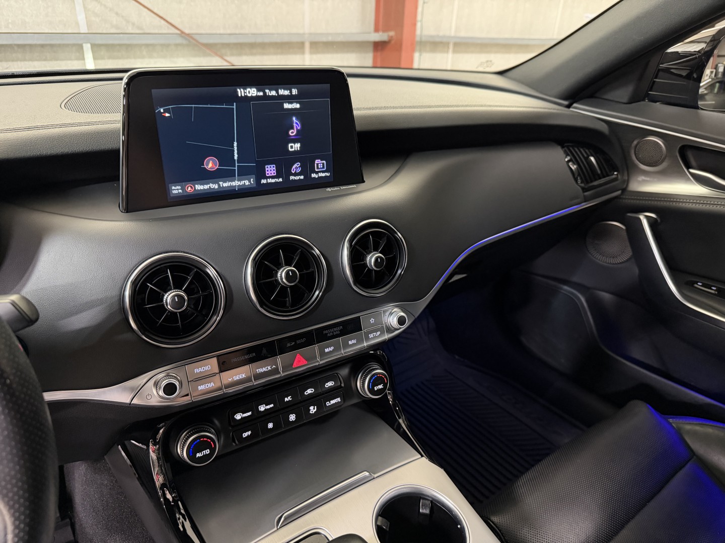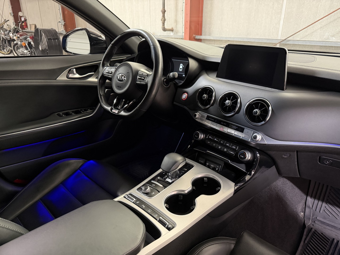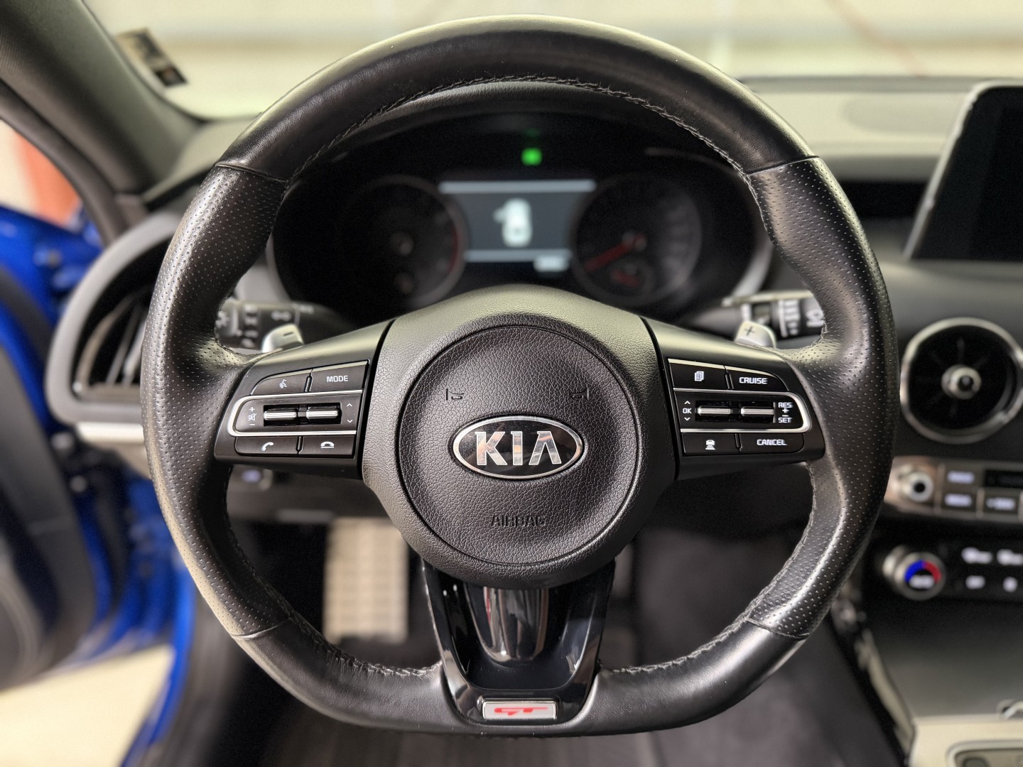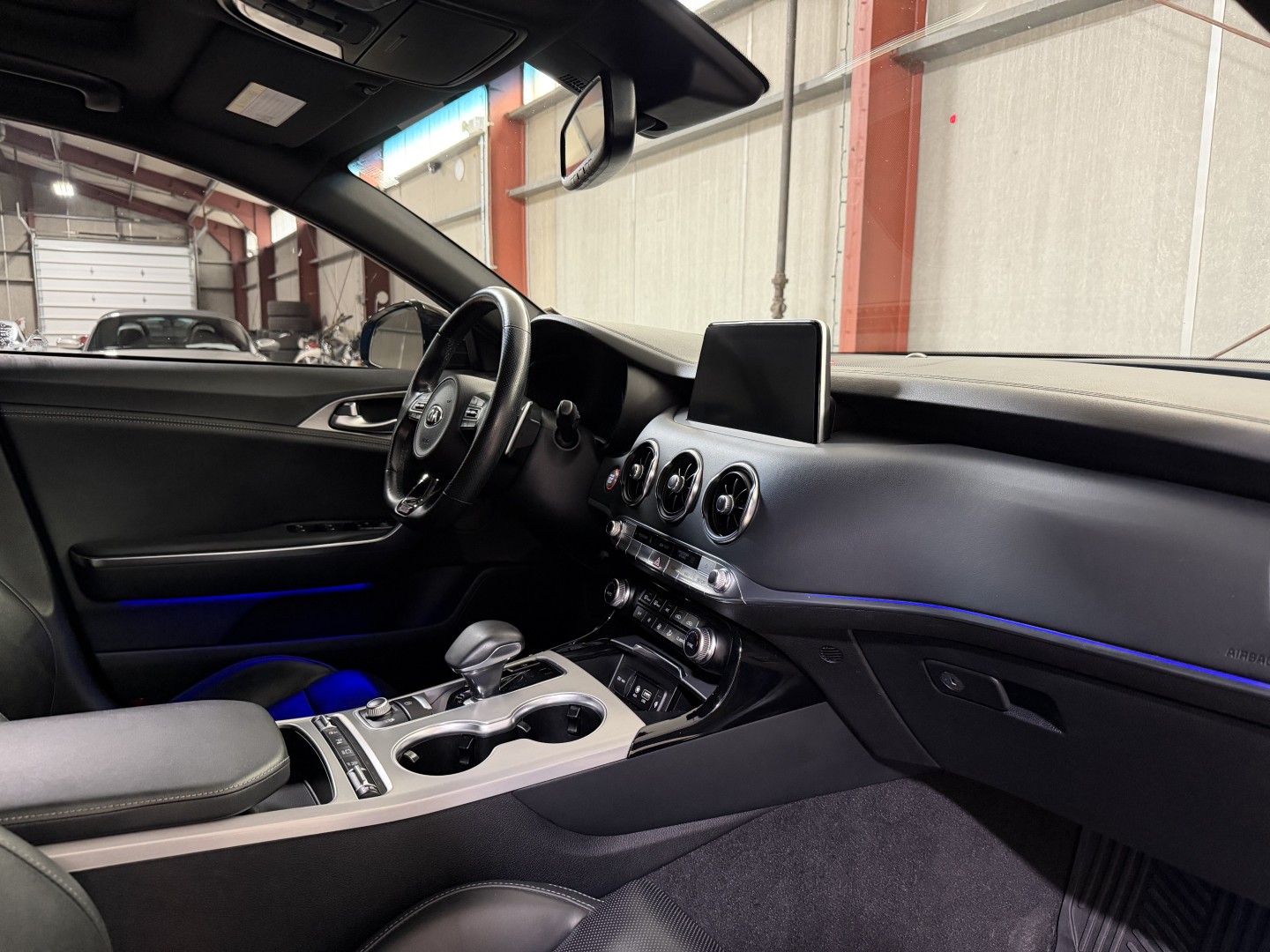 Finished in Micro Blue over a Black interior, this GT2 represents the top trim level of the Stinger lineup. Power comes from a twin-turbocharged 3.3-liter V6 paired with an 8-speed automatic transmission and all-wheel drive, delivering strong performance along with everyday usability. Factory-equipped with Brembo brakes, adaptive suspension, and drive mode select, the Stinger GT2 offers a well-balanced driving experience.