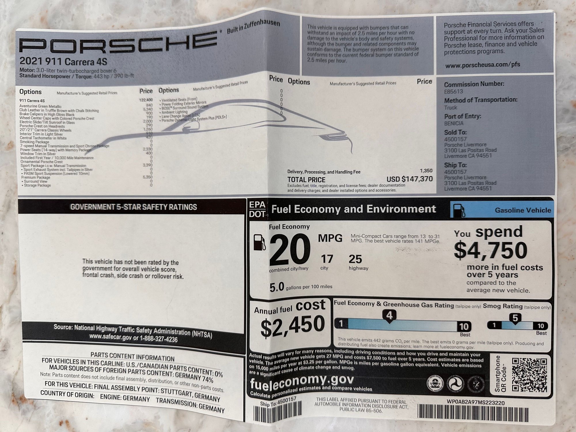 The sale will include two keys and the owner’s manual. The window sticker is in the photos but has been lost between owners.
