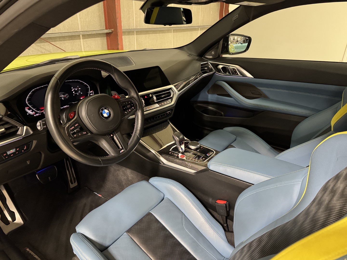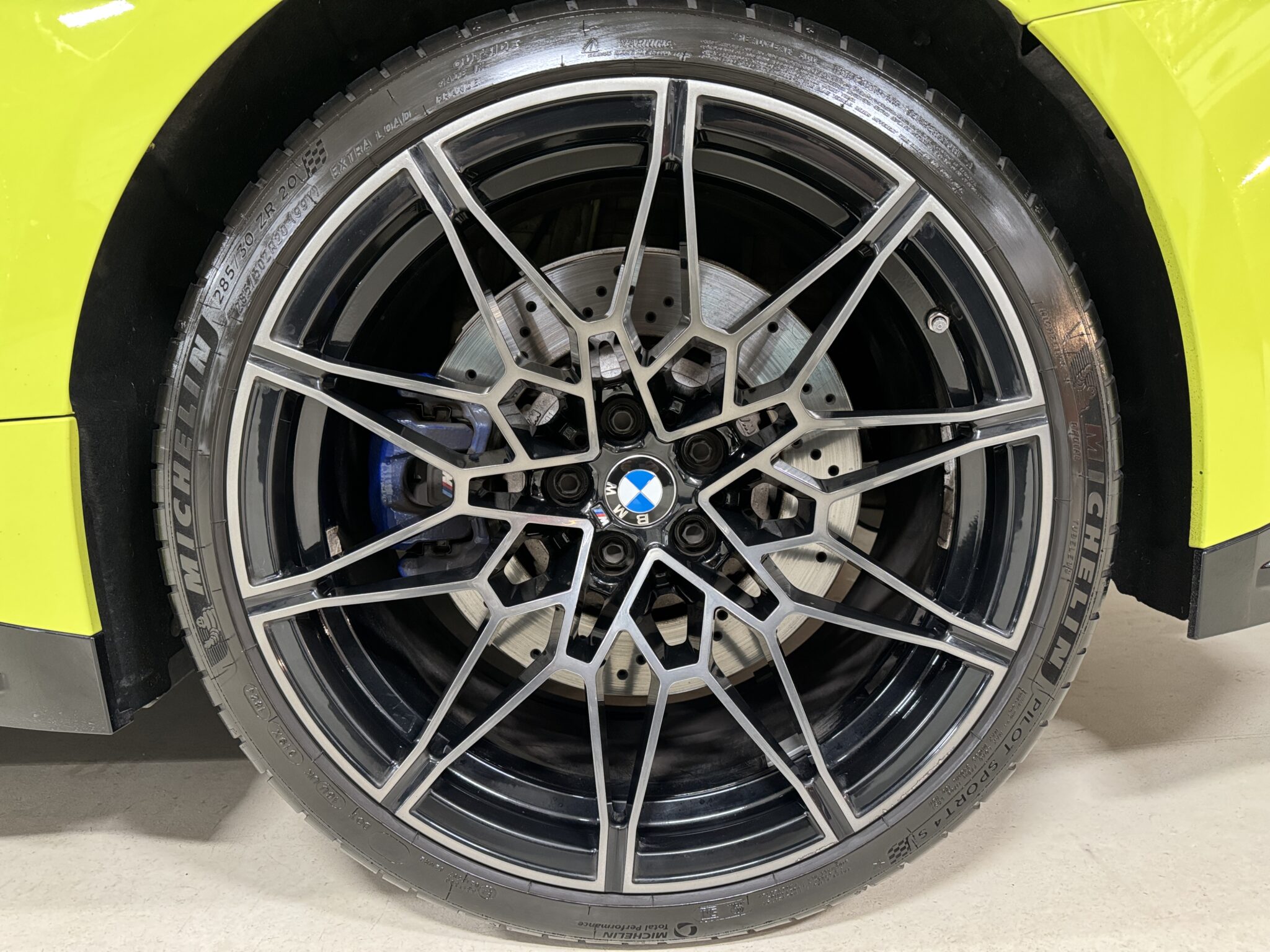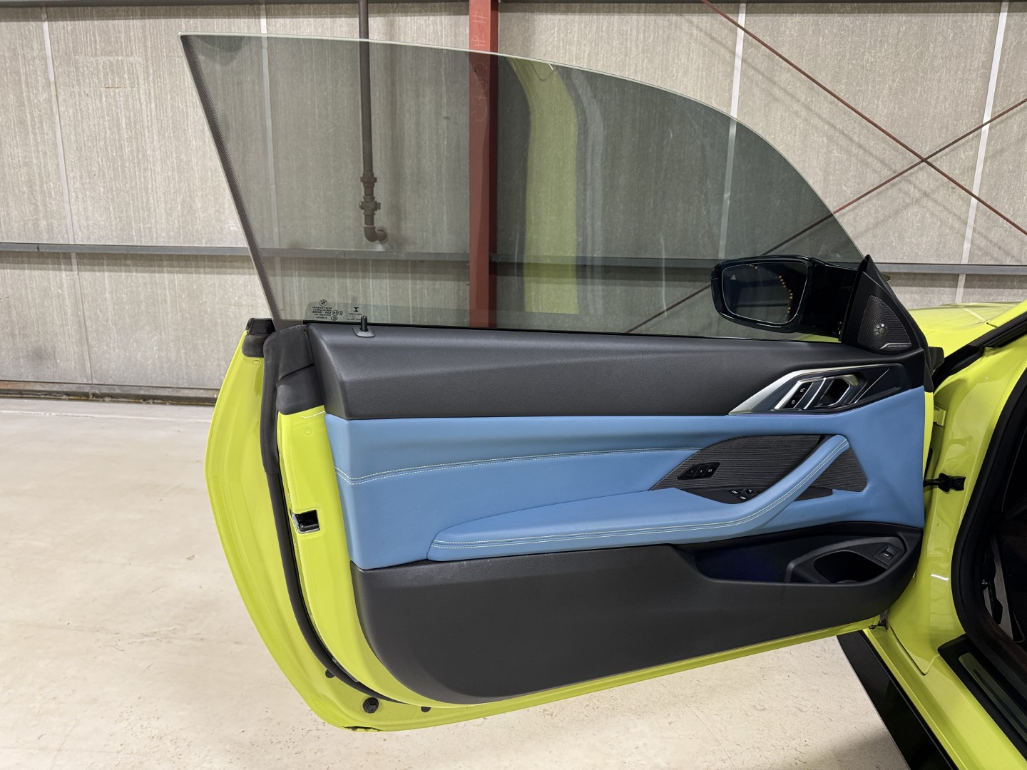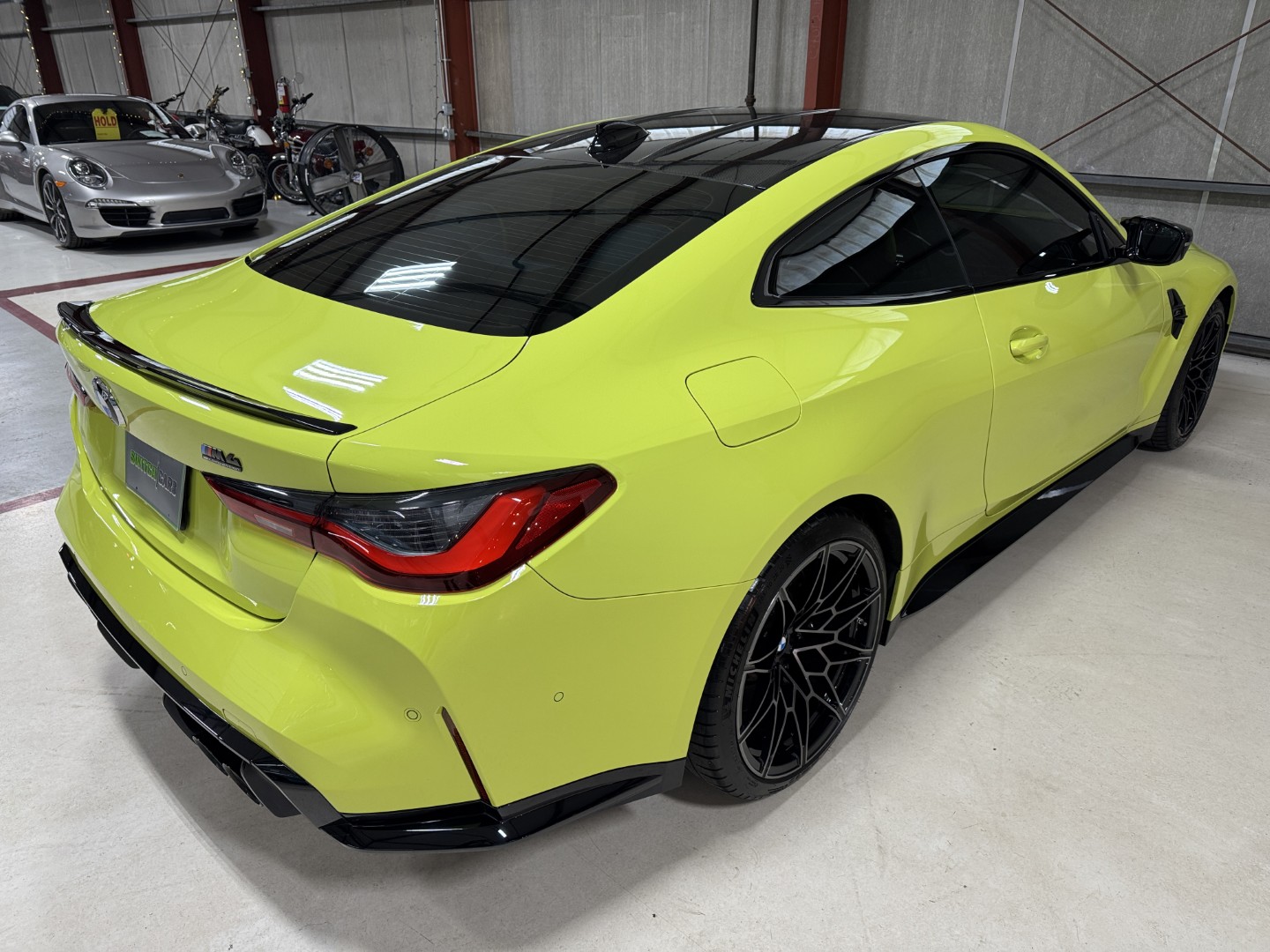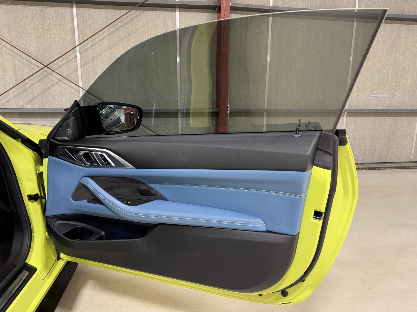 2022 BMW M4 Competition xDrive now available with just under 32,000 miles. The exterior is finished in Sao Paulo Yellow over a Yas Marina Blue/Black extended leather interior. Power comes from a 503-horsepower S58 3.0-liter twin-turbocharged inline-six paired with an 8-speed M Steptronic transmission. Factory options include the Parking Assistance Package, Executive Package, M Shadowline Lights, carbon fiber interior trim, and front ventilated seats.