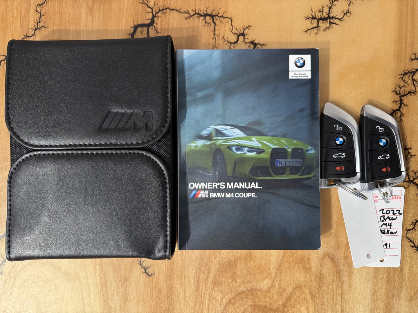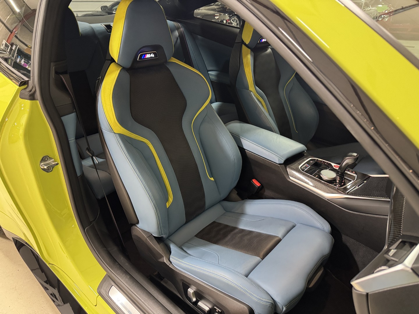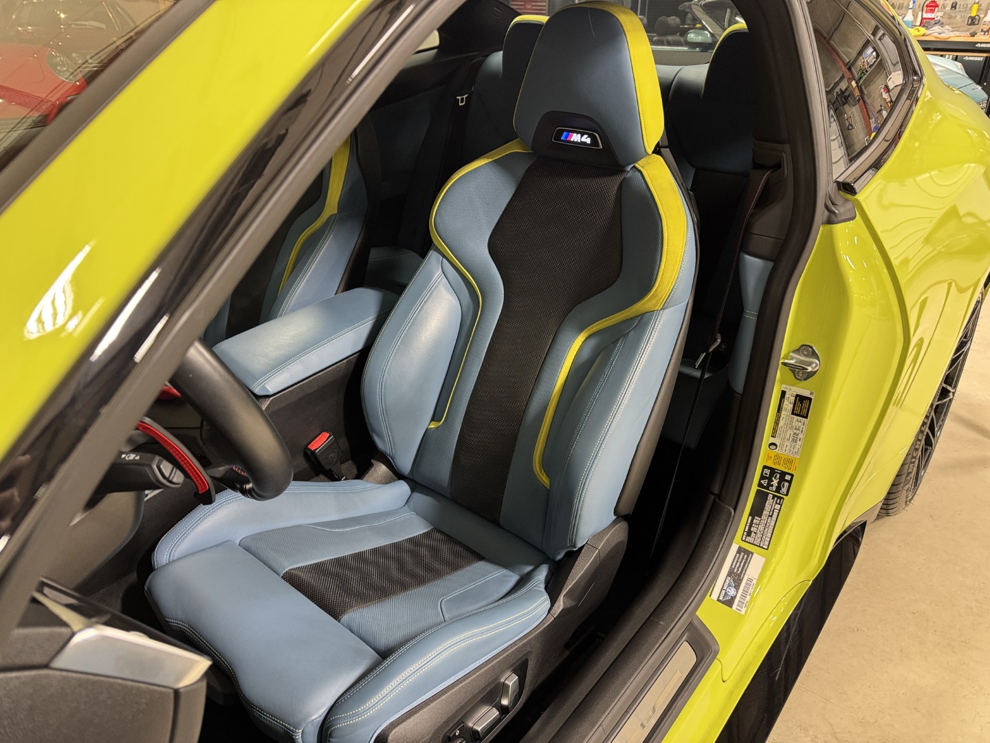 This M4 is a two-owner vehicle with a clean Carfax and has been serviced regularly by a BMW dealership. Both the exterior and interior are in excellent condition, and the car presents as a very well-cared-for example of the G82 M4.
