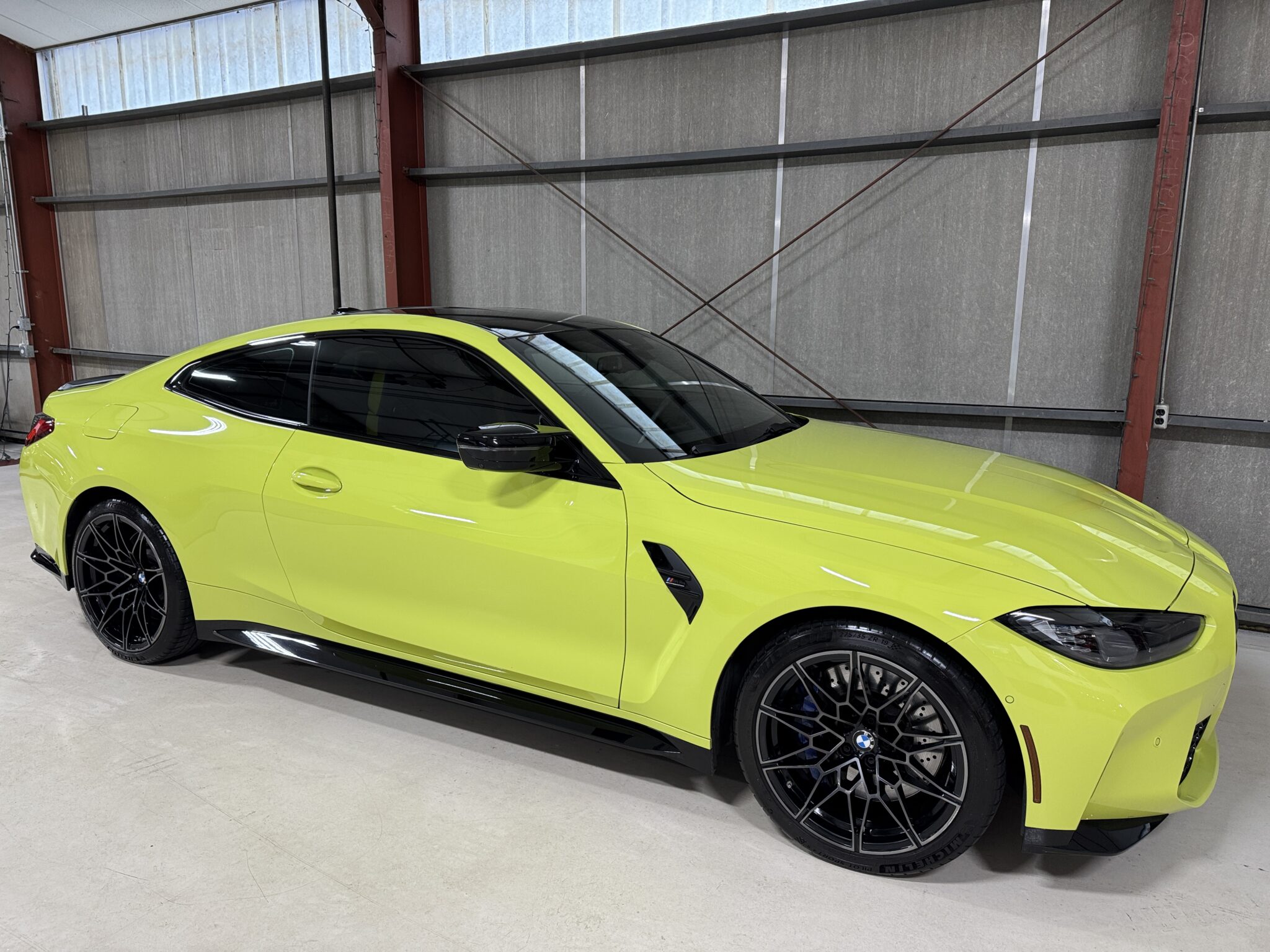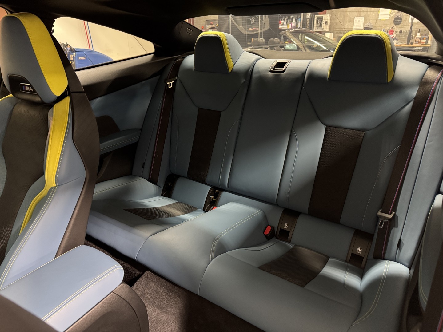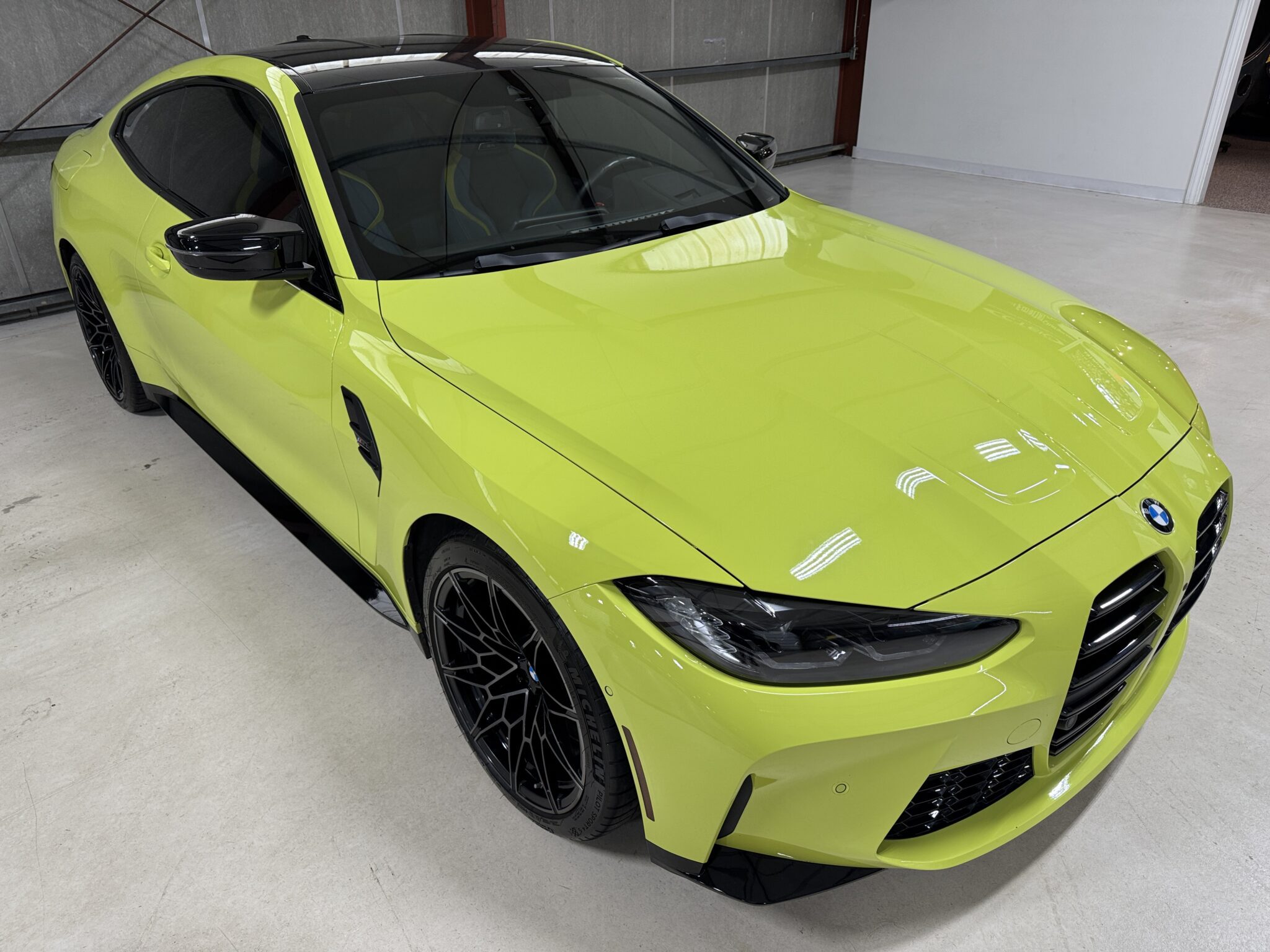 This M4 is a two-owner vehicle with a clean Carfax and has been serviced regularly by a BMW dealership. Both the exterior and interior are in excellent condition, and the car presents as a very well-cared-for example of the G82 M4.